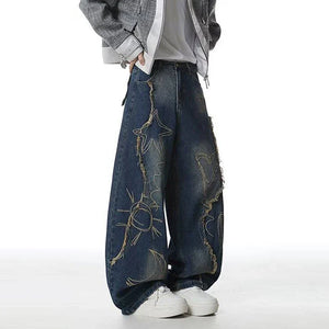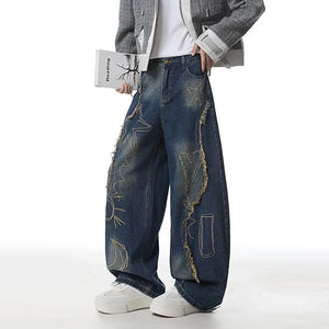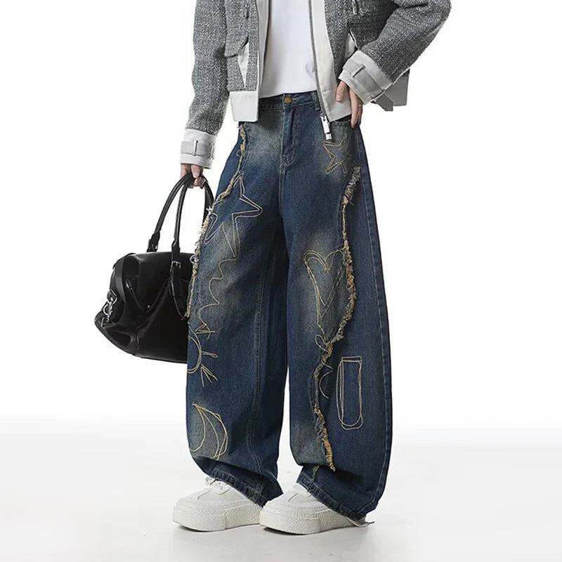 Raw Edge Printing Contrast Color Wide Leg Jeans