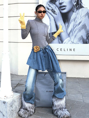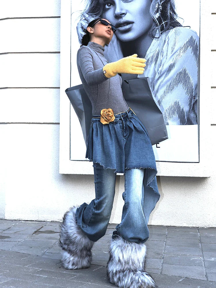 Streetwear American Long Tail Flared Denim Jeans