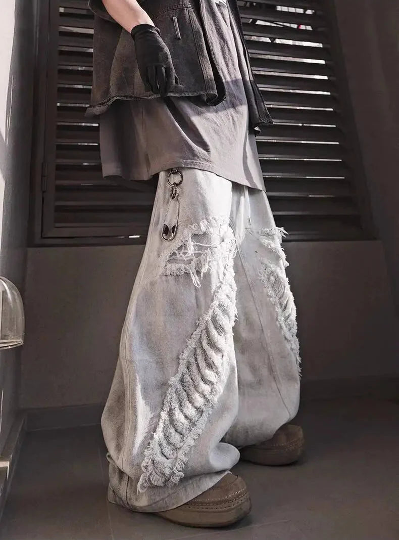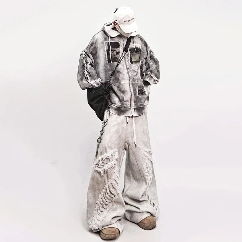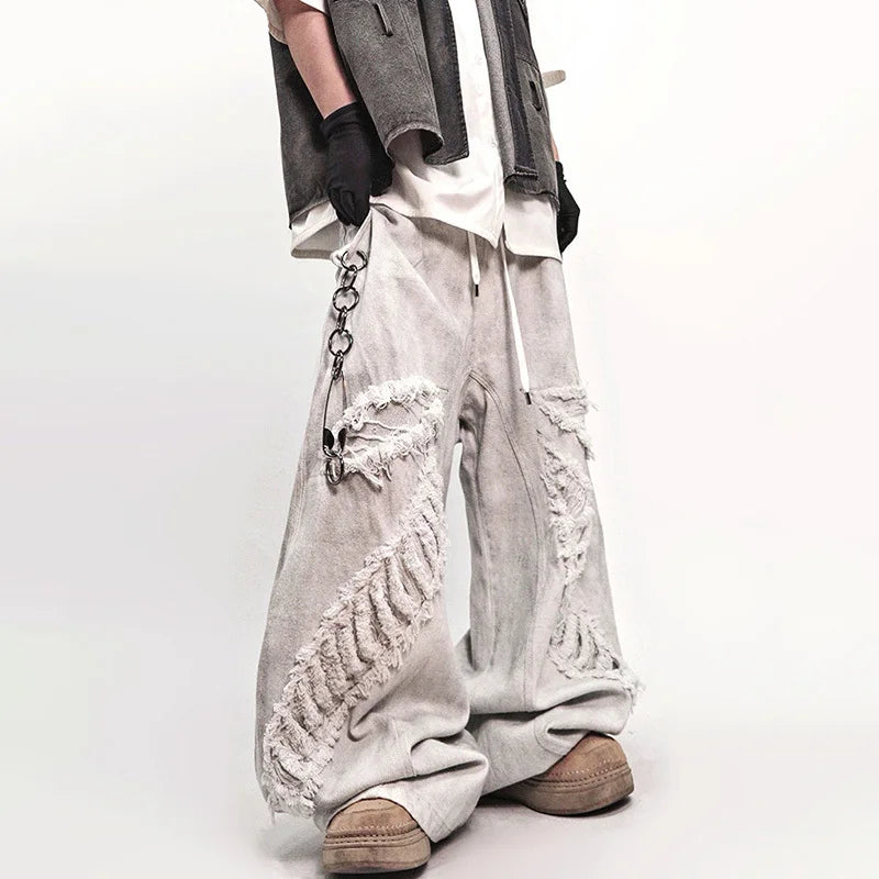 Streetwear High Street Patched Wide Leg Jeans