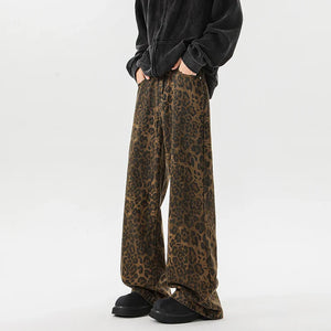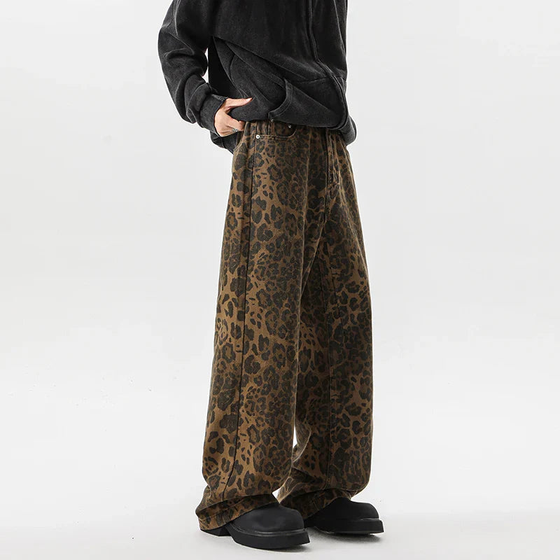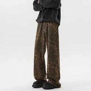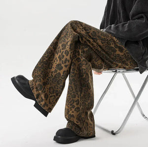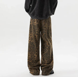 Streetwear Leopard Print Wide Leg Denim Jeans