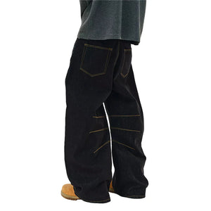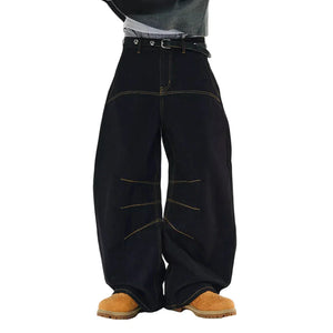 Streetwear Spliced Wide Leg Baggy Denim Jeans