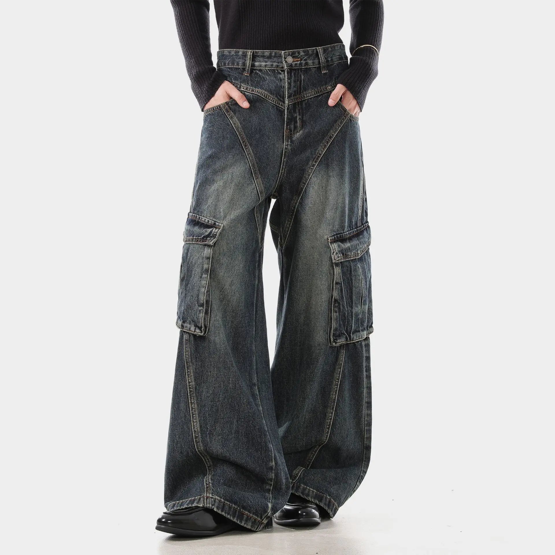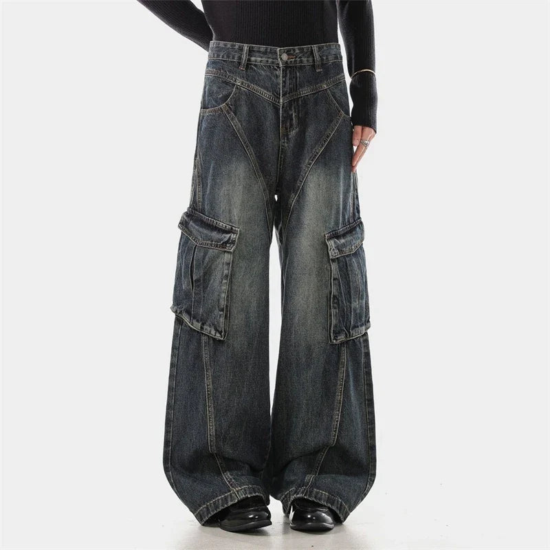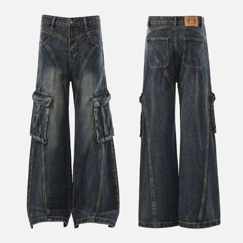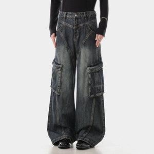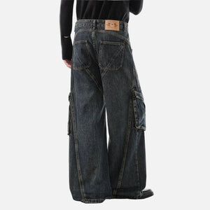 Trendy Deconstructed Wide Leg Cargo Jeans