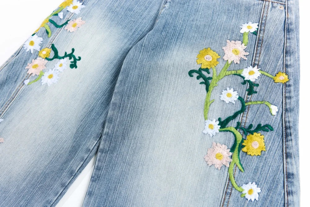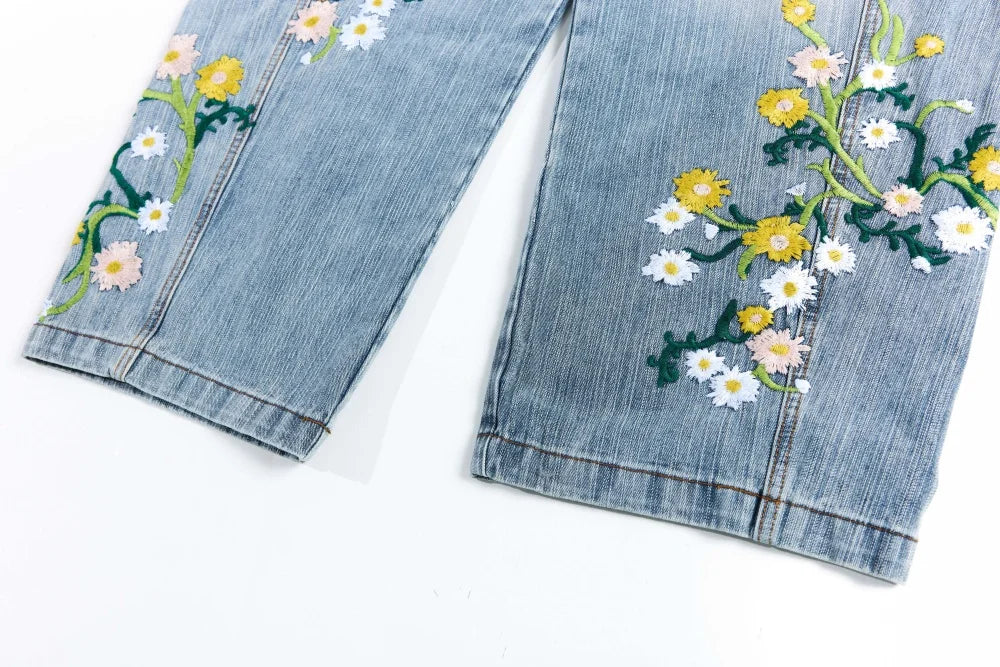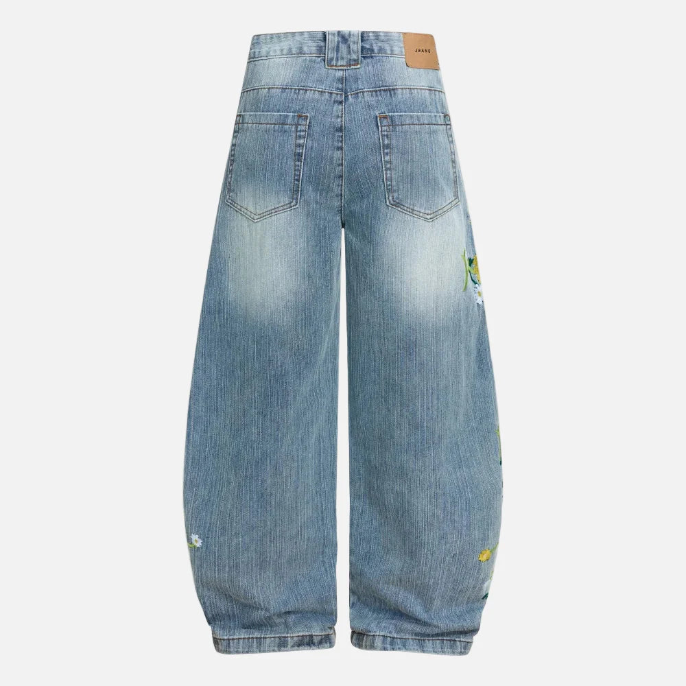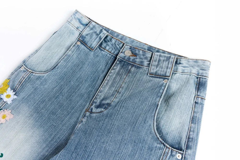 Trendy Distressed Flower Banana Wide Leg Jeans