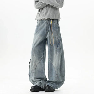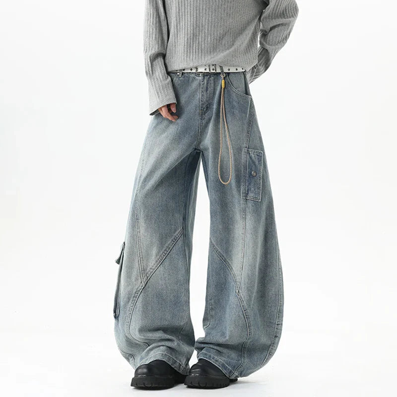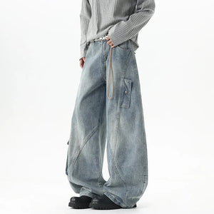 Y2K High Street Wide Leg washing Big Pocket Denim Jeans
