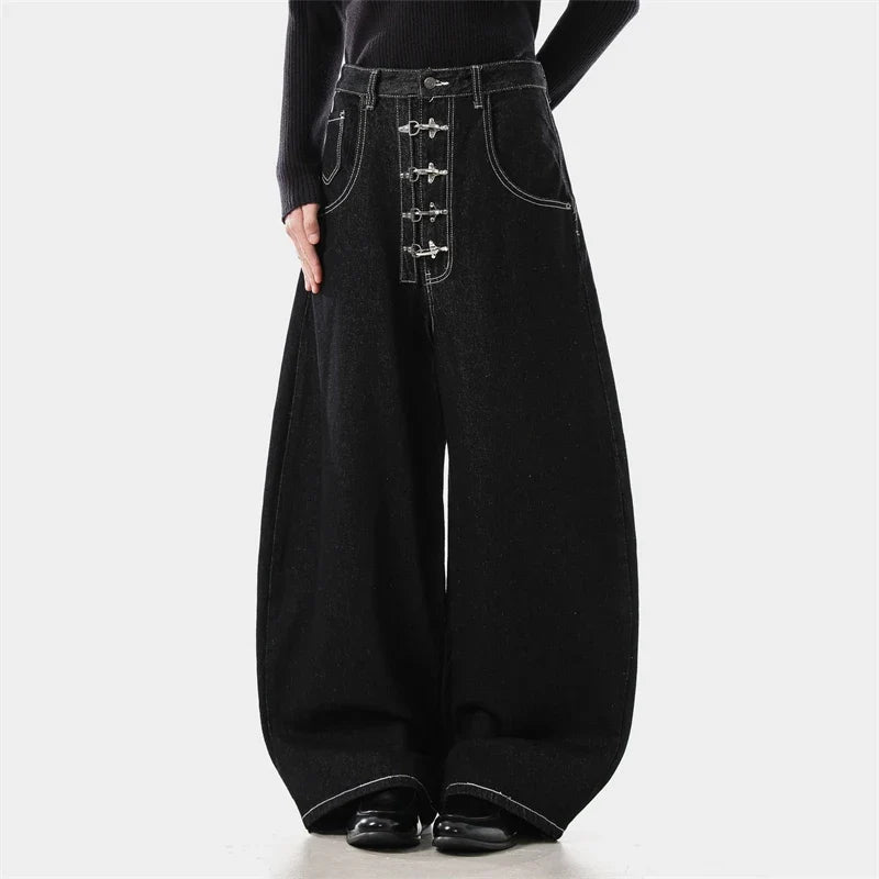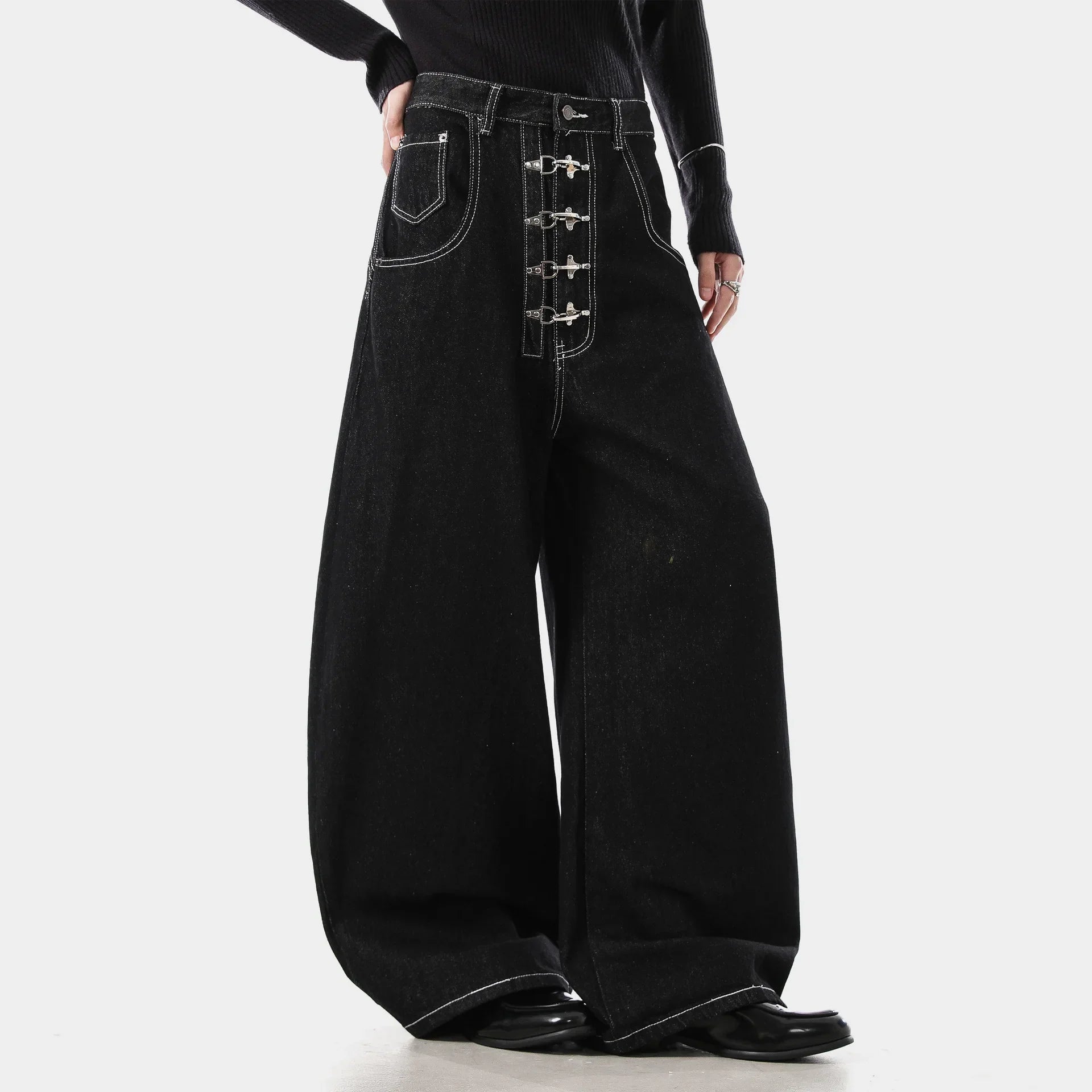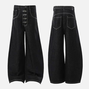 Y2K High Waist Buttoned Boot Cut Denim Jeans