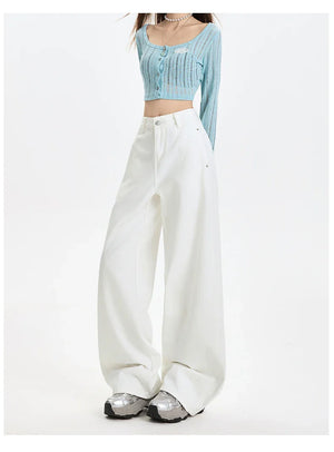 Y2K White Streetwear Wide Leg Jeans