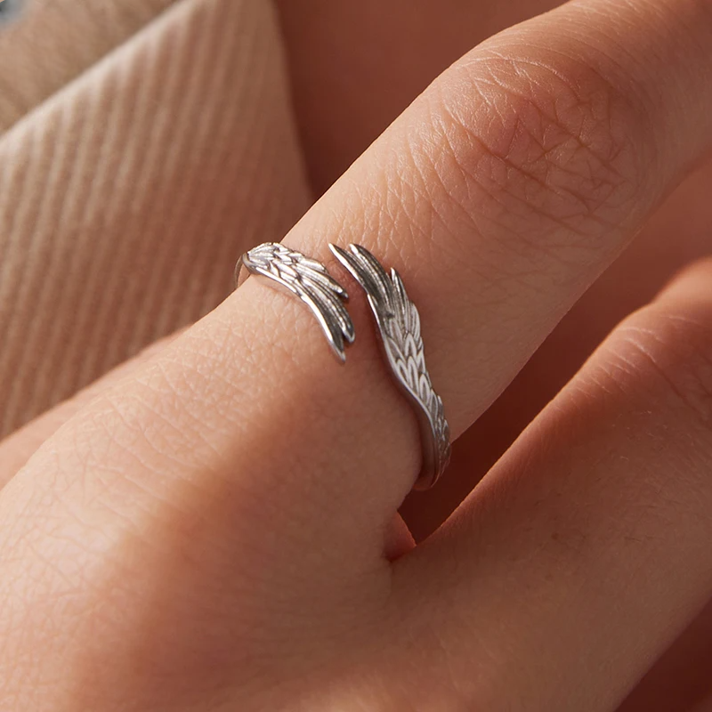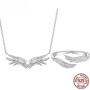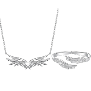 Embrace celestial style with this 925 Sterling Silver Angel Wings Set—a delicate and meaningful necklace and ring combo.