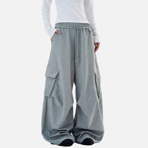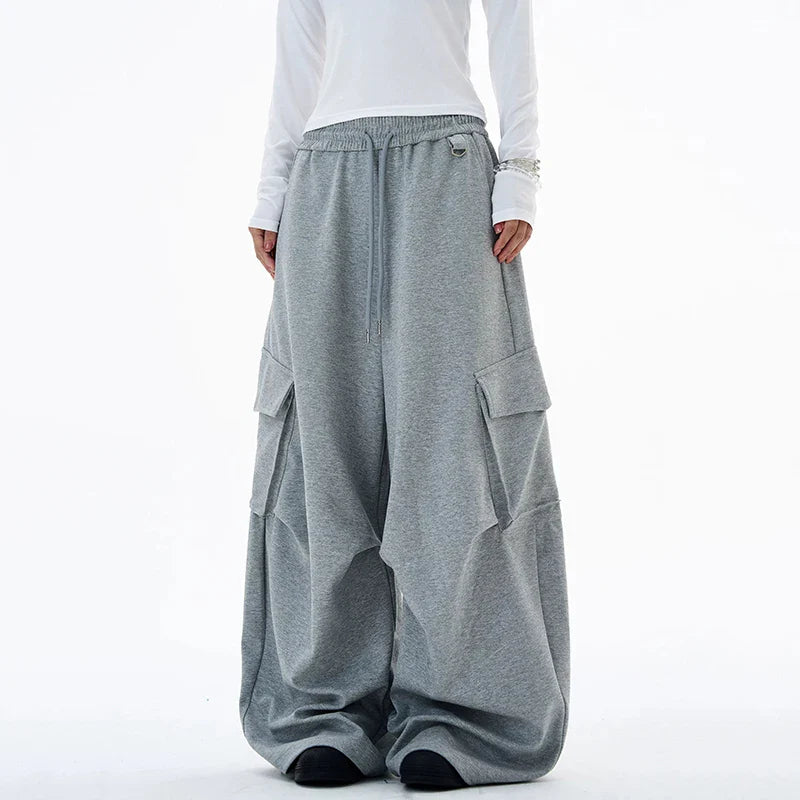Breathable Solid Color Pleated Cargo Sweatpants