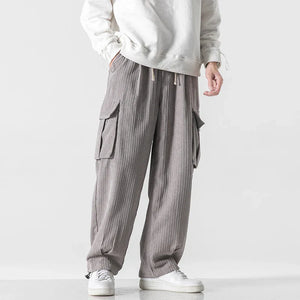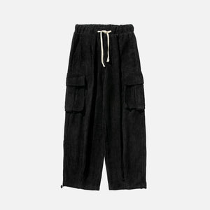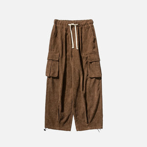 Flattering Corduroy Elastic Waist Cargo Sweatpants