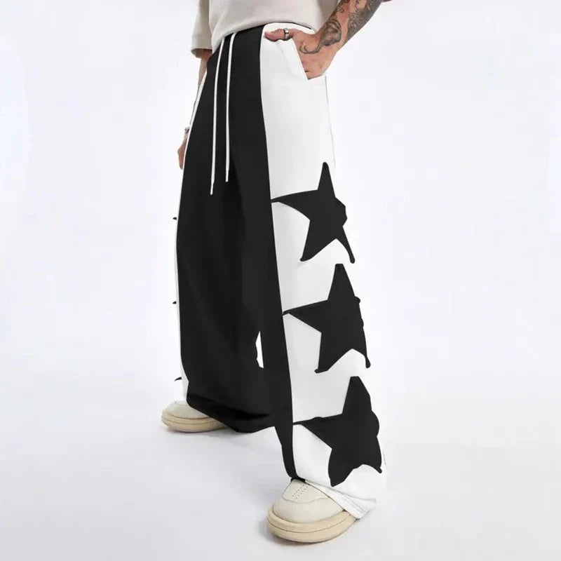 Star Patch Color Block Wide Leg Sweatpants