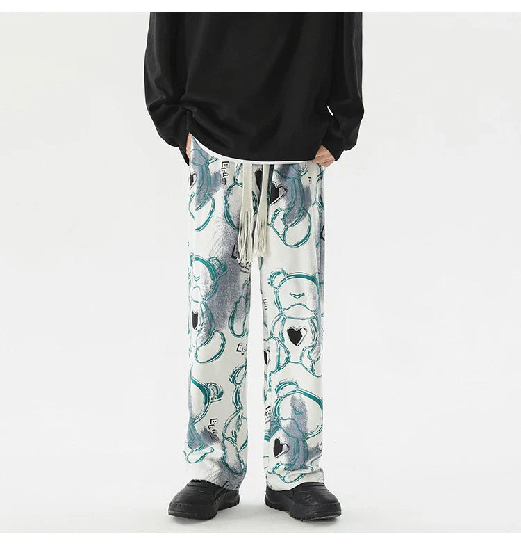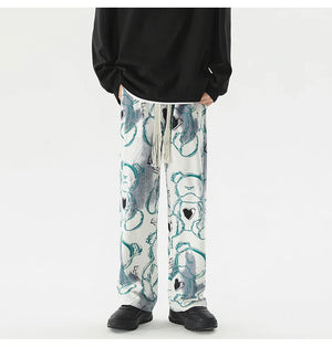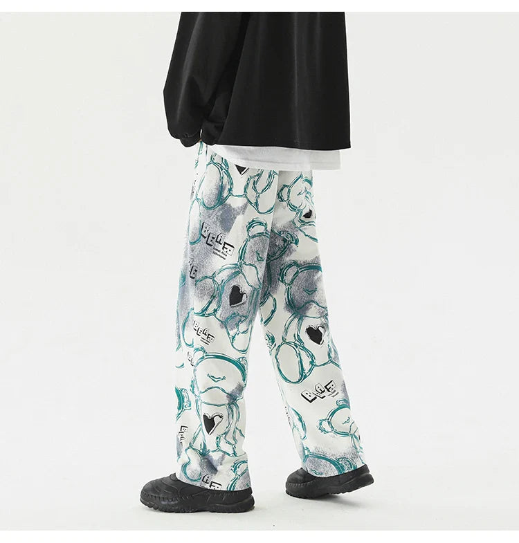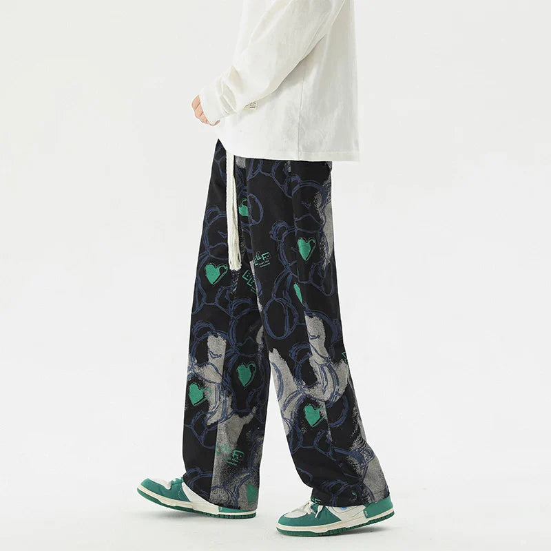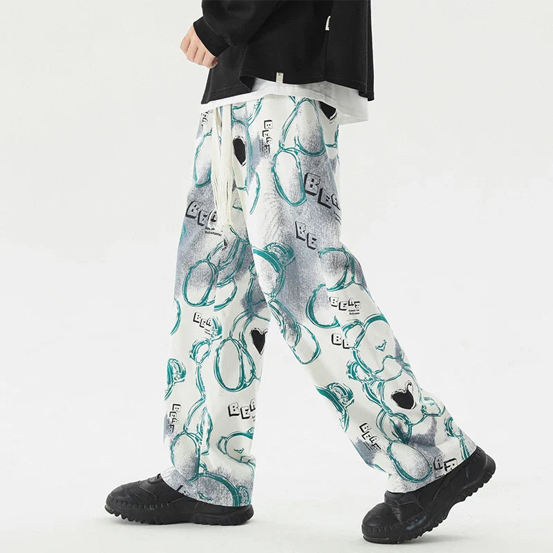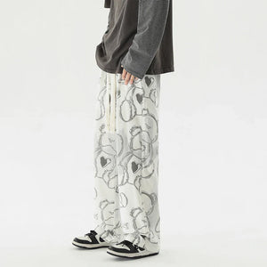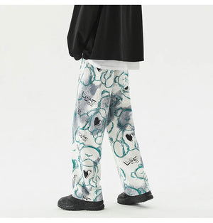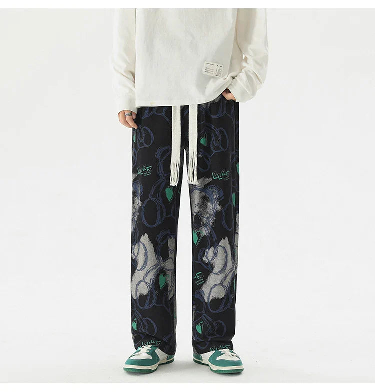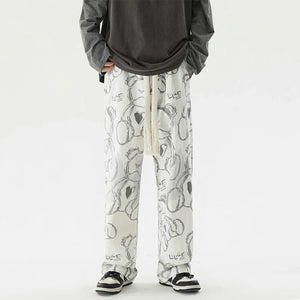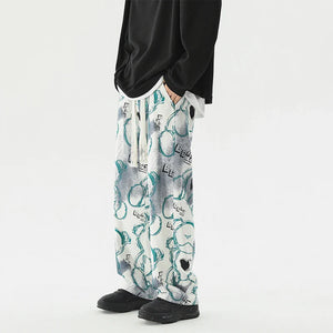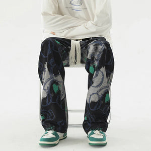 Vintage Graffiti Printed Straight Leg Sweatpants
