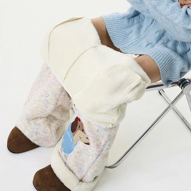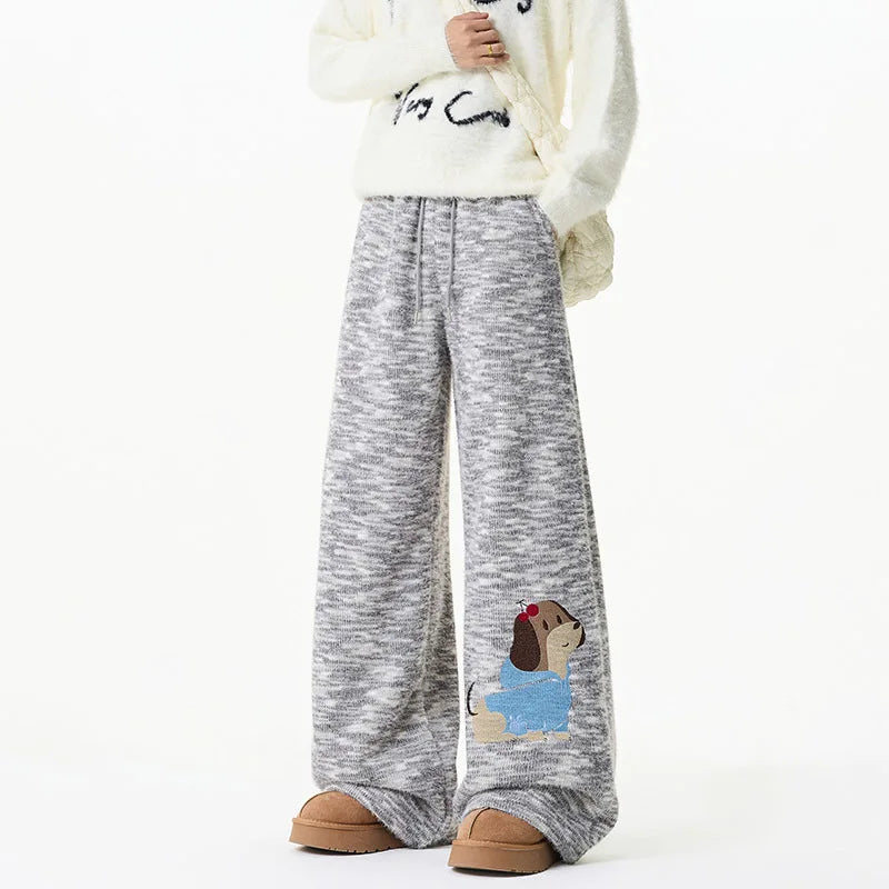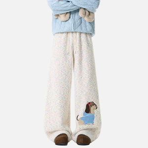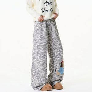 Winter Embroidery Cartoon Pattern Elastic Sweatpants