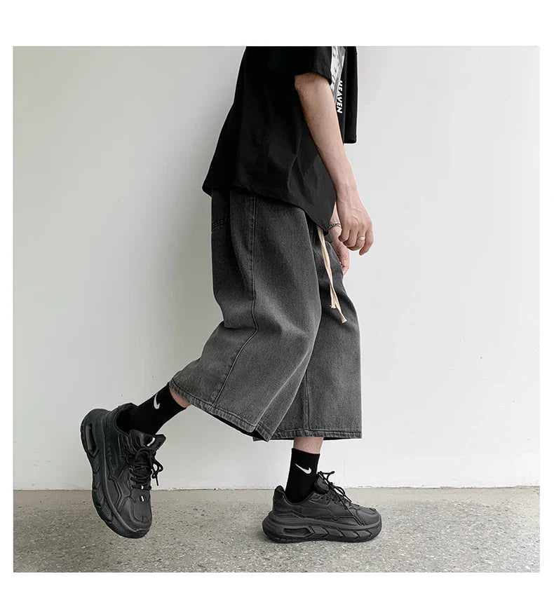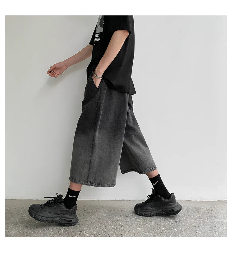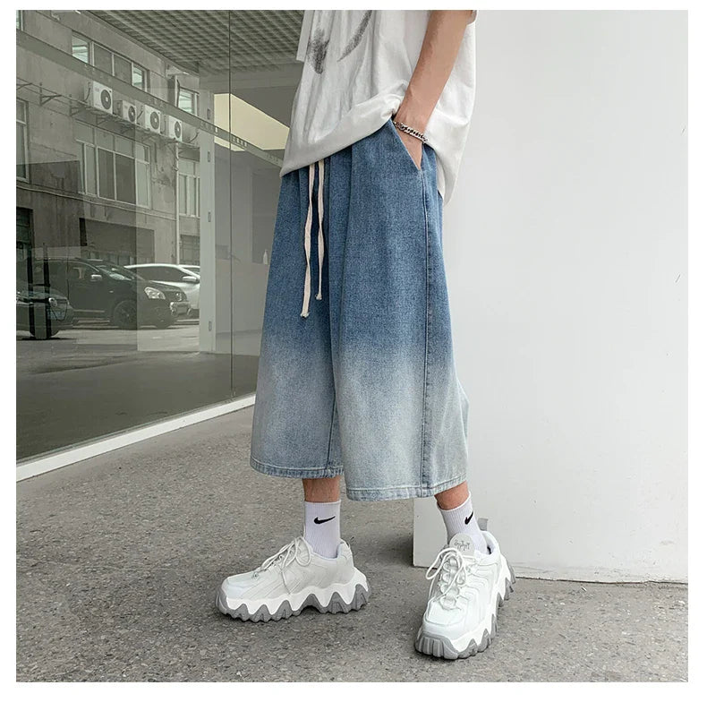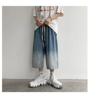 Men's Streetwear Gradient Calf-Length Denim Jorts