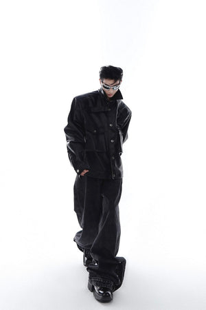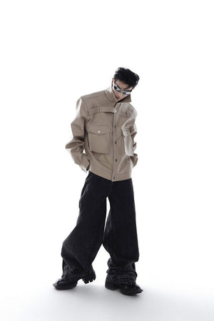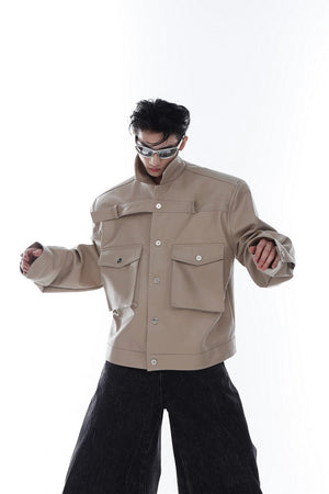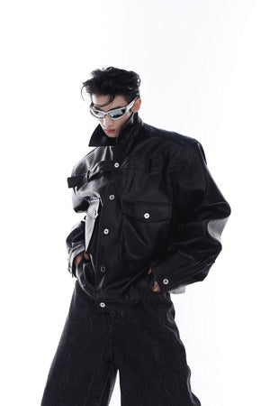 Metal Logo Leather Jacket