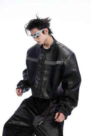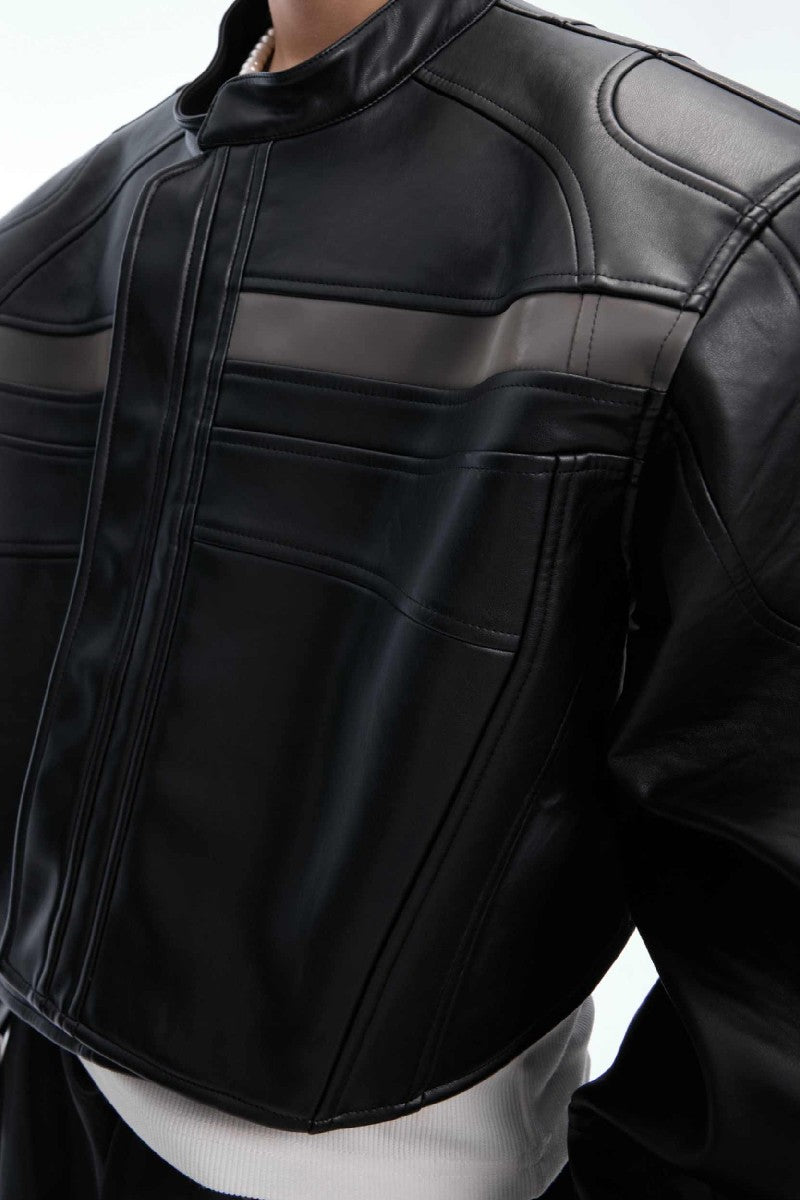 Deconstructed Patchwork Short Leather Jacket