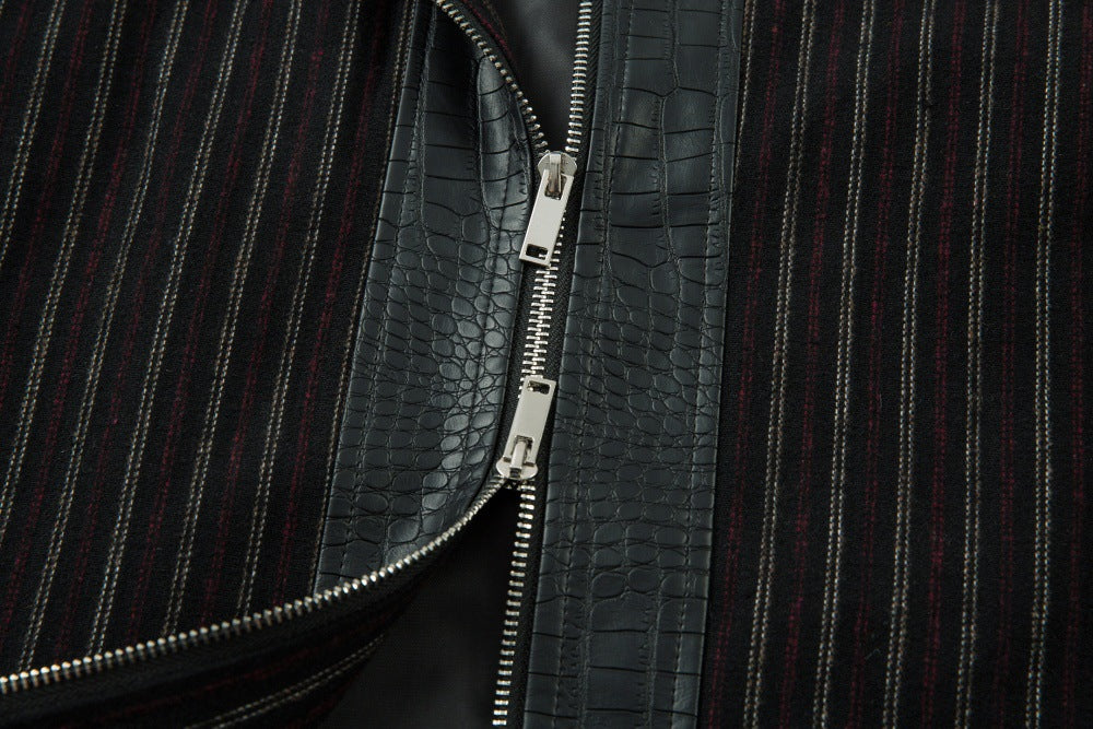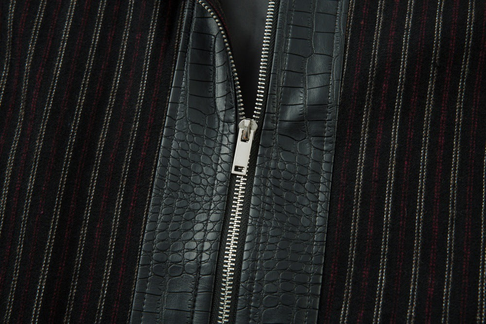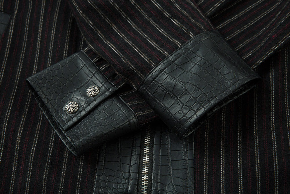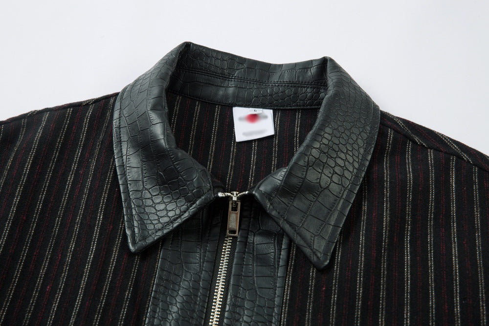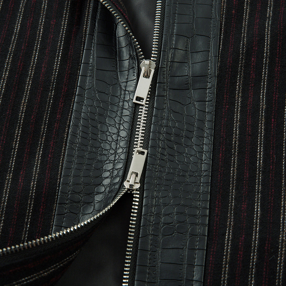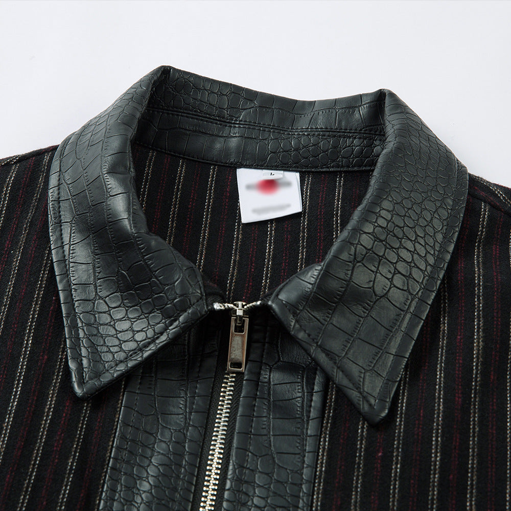 A men’s retro-style PU leather jacket featuring a bold crocodile texture, sleek finish, and statement look for standout streetwear style.