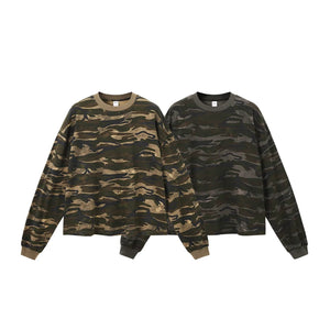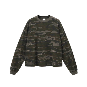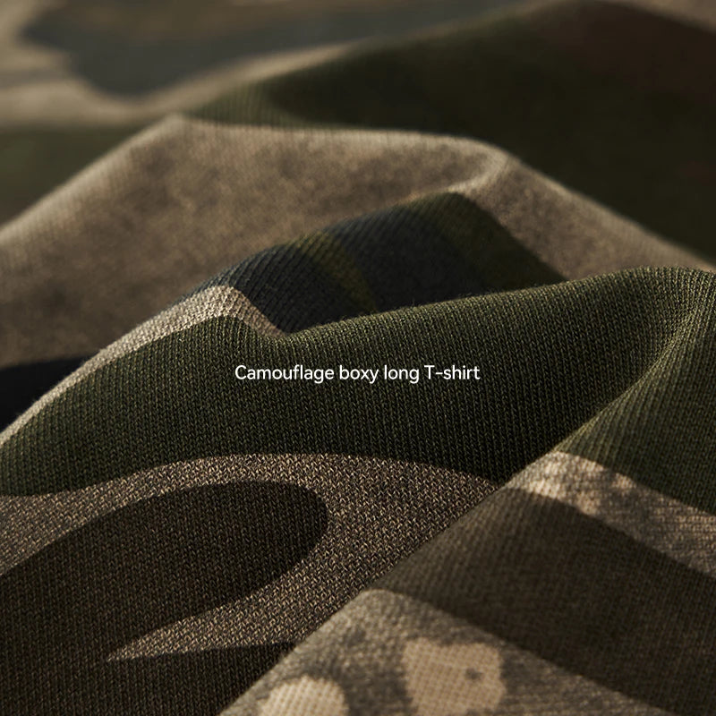 A boxy long-sleeve tee featuring a bold camo print and relaxed fit for effortless street-style comfort.