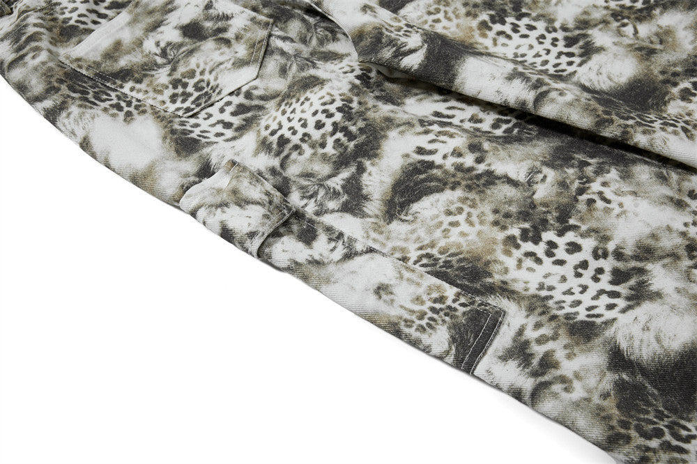 Streetwear Leopard Camo Tie Dye Cargo Jeans