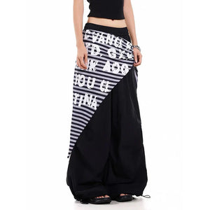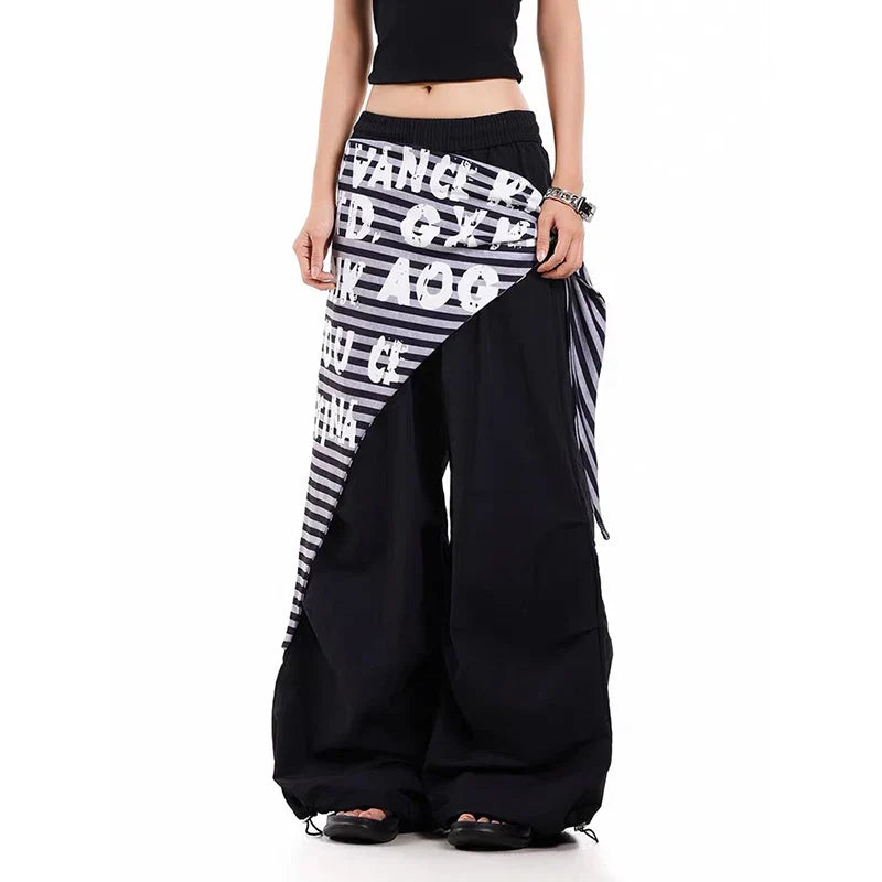 Black Y2K Oversized Japanese Wrap Wide Leg Pants