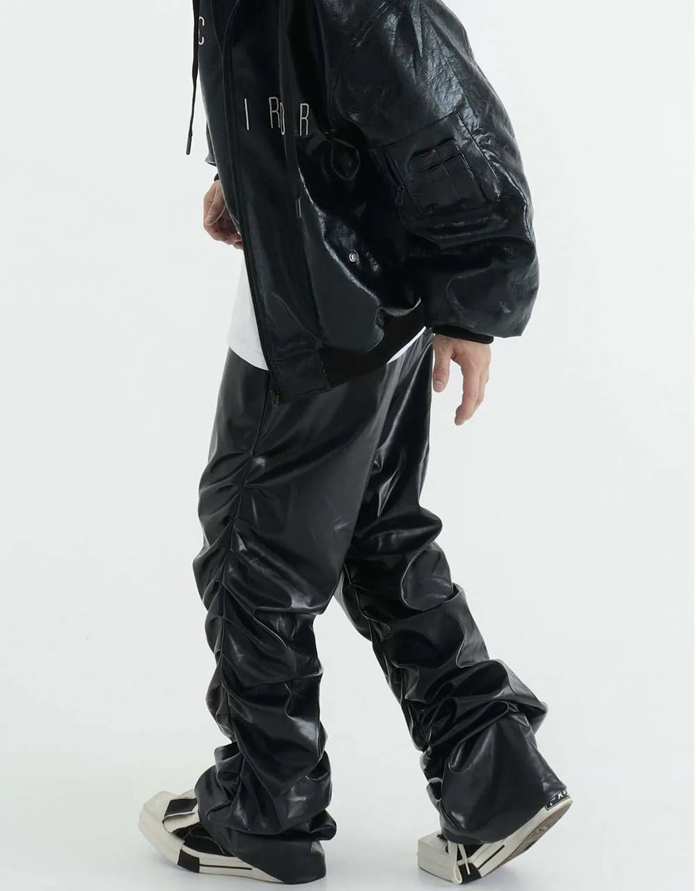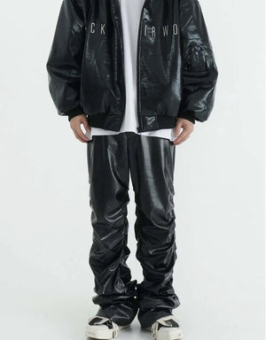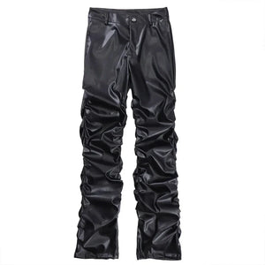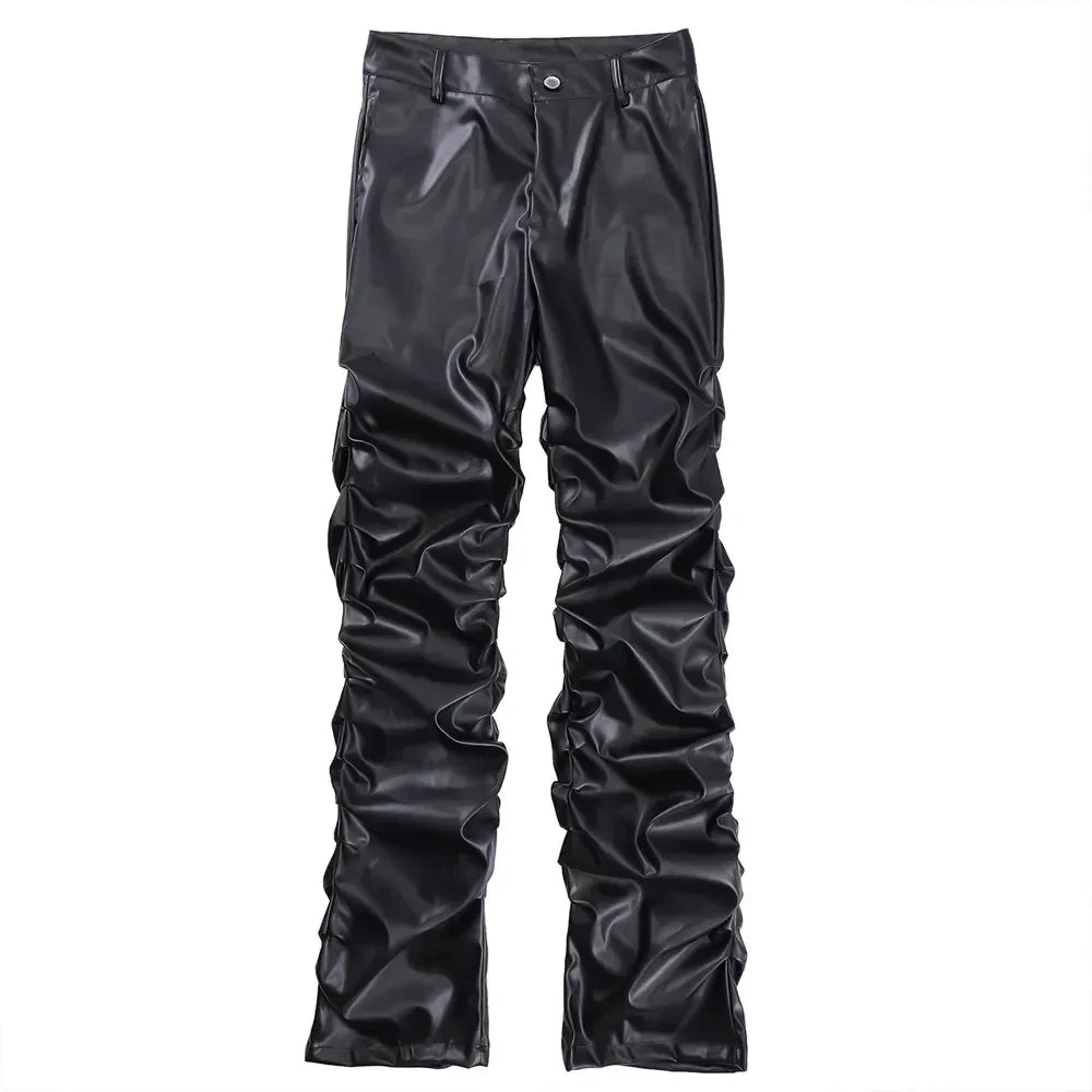 Breathable Stylish Pleated Leather Motorcycle Pants