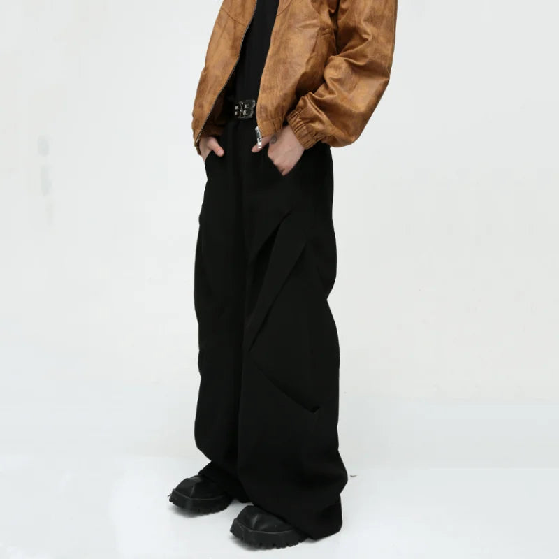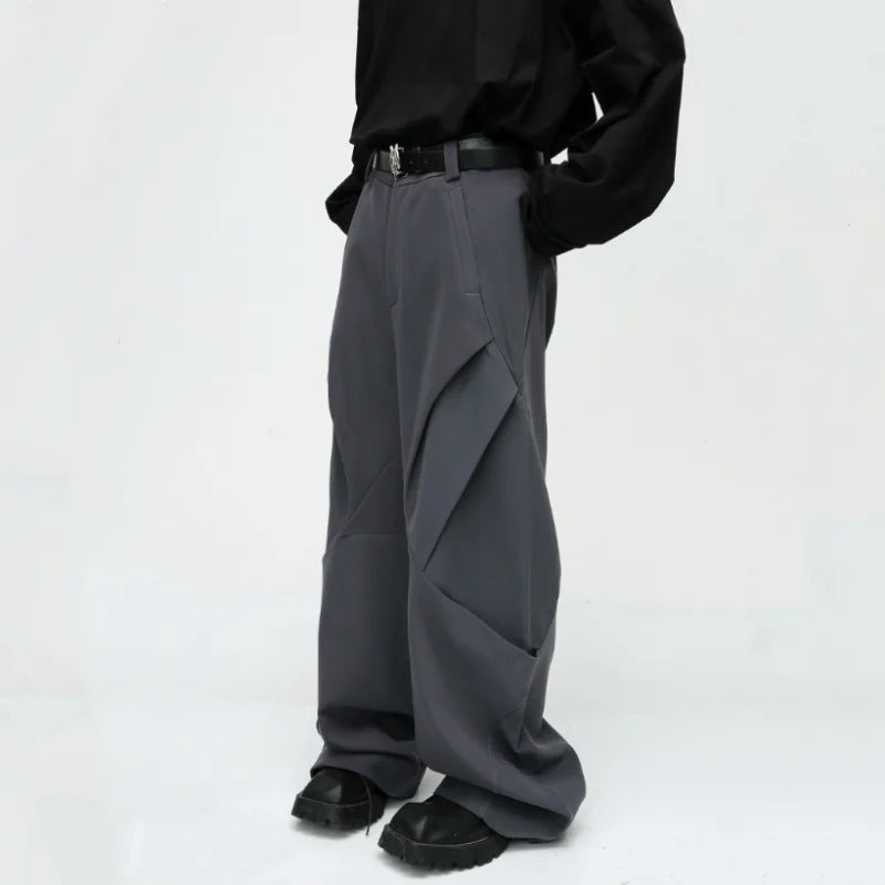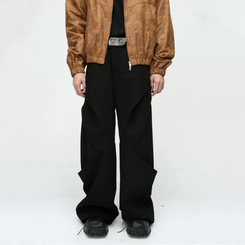Diamond Patchwork Pleated Casual Pants