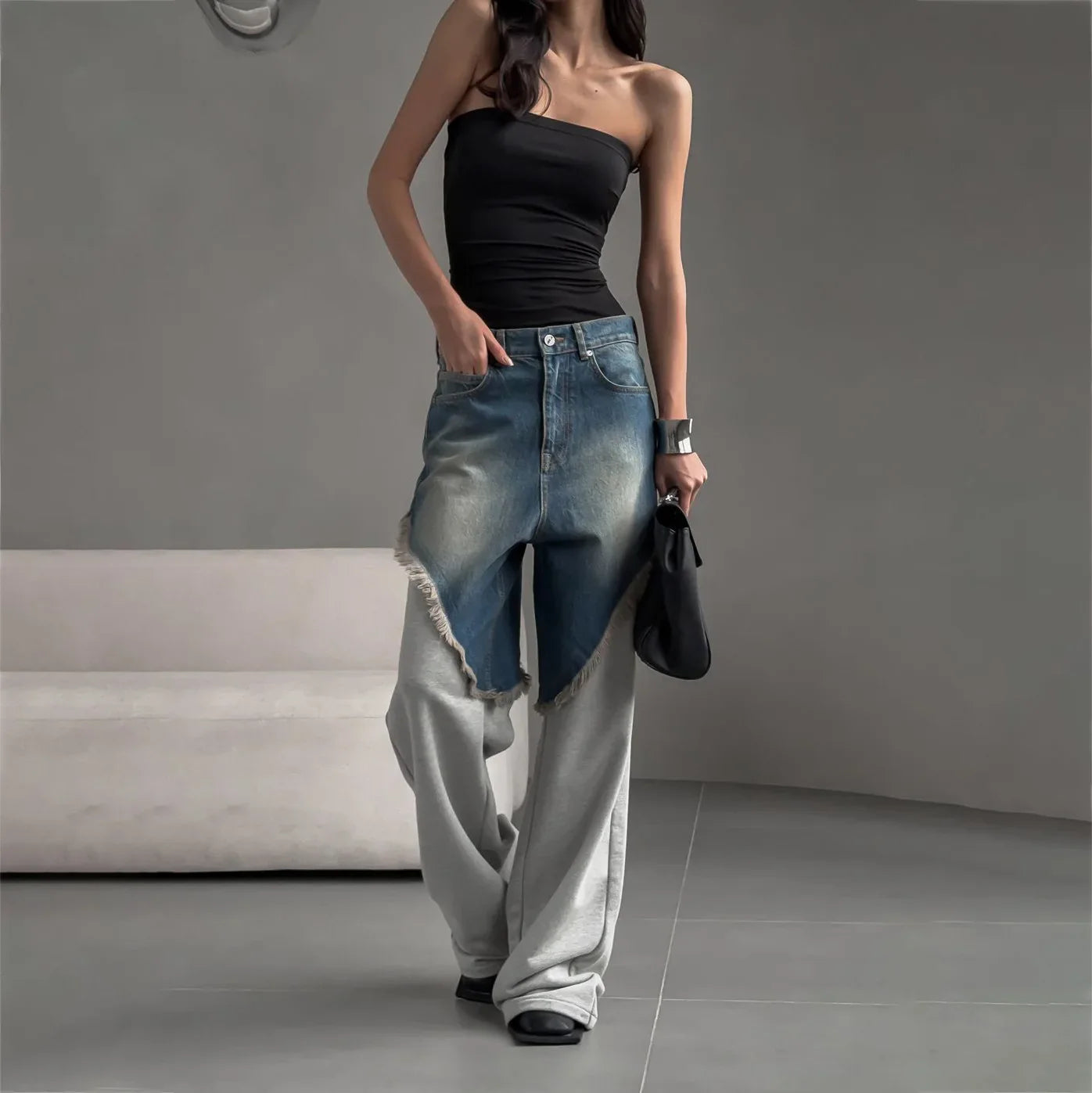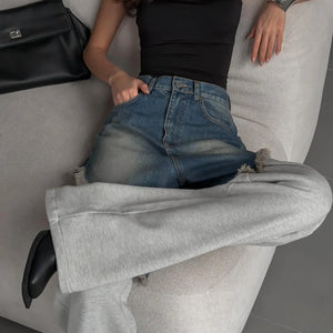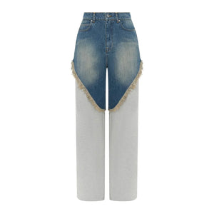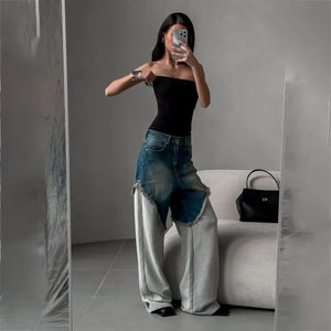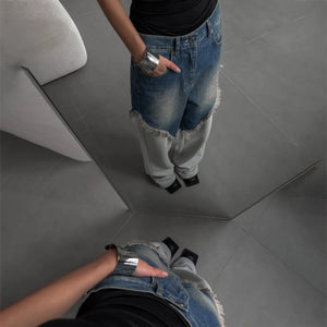 Distressed Patchwork Wide Leg Denim Pants