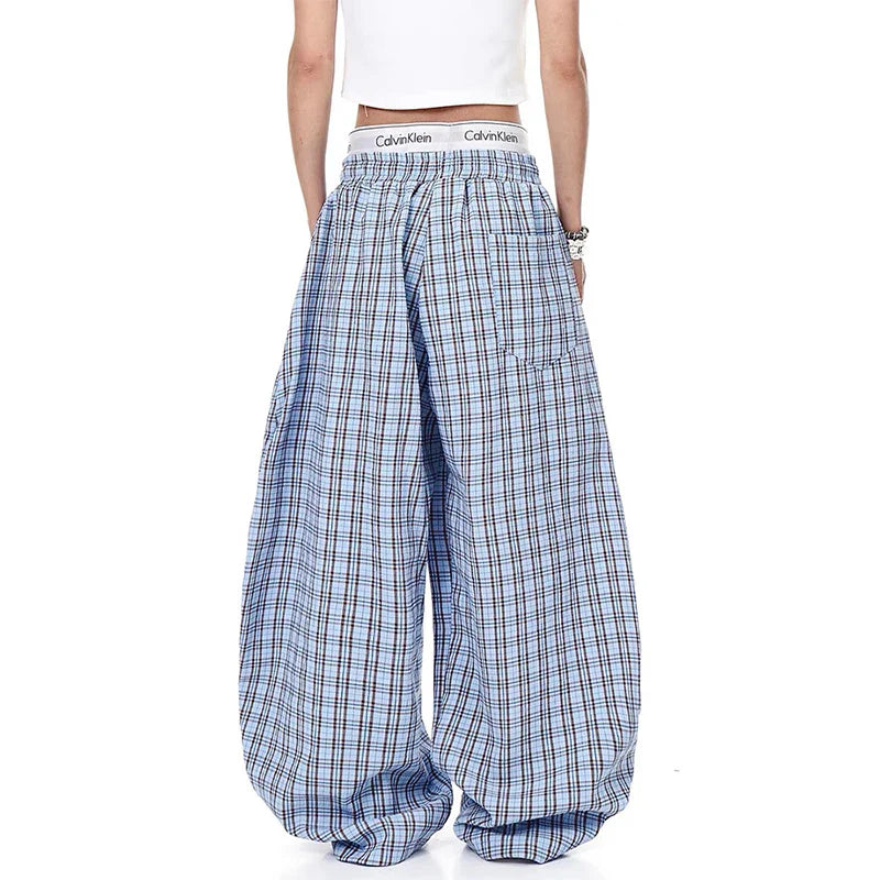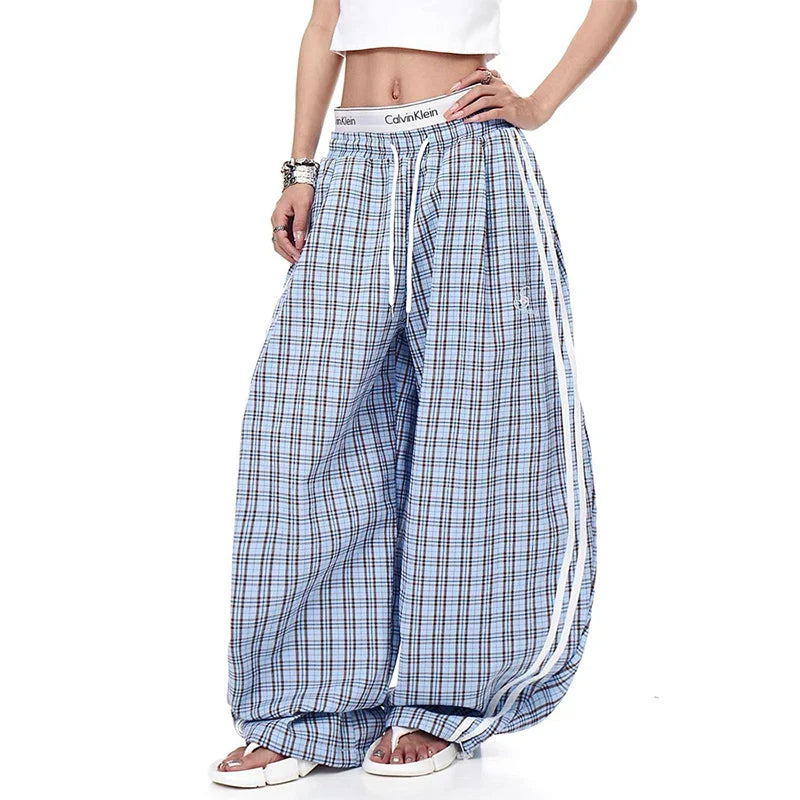 Flattering Y2K Plaid Cool Elastic Wide Leg Pants