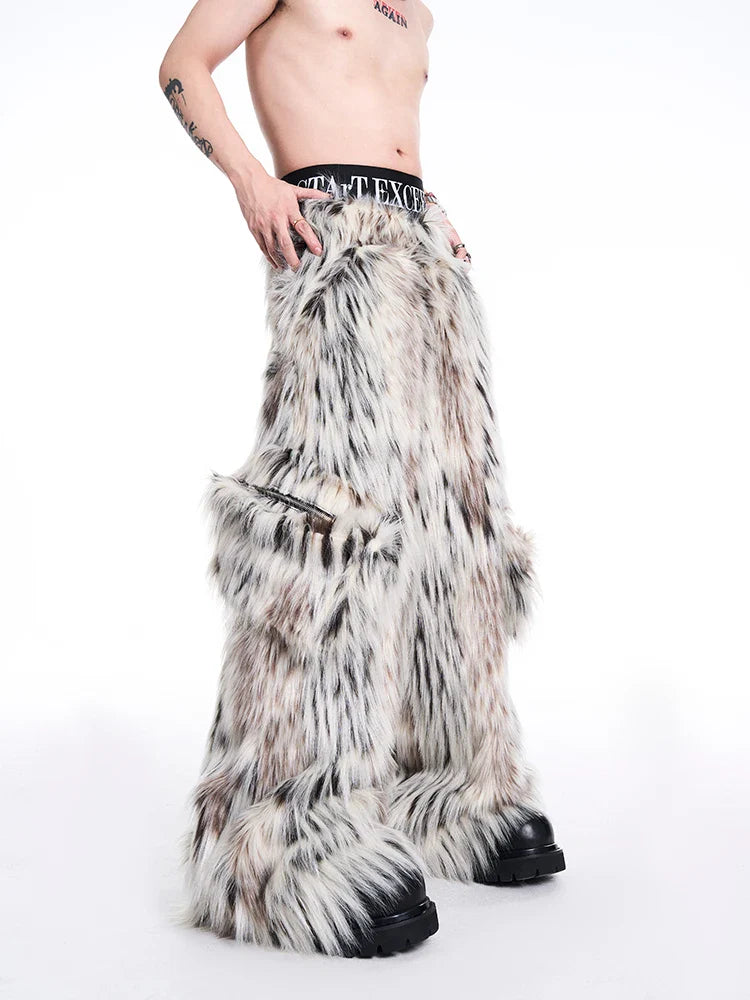 Luxury Leaopard Oversized Faux Fur Casual Pants