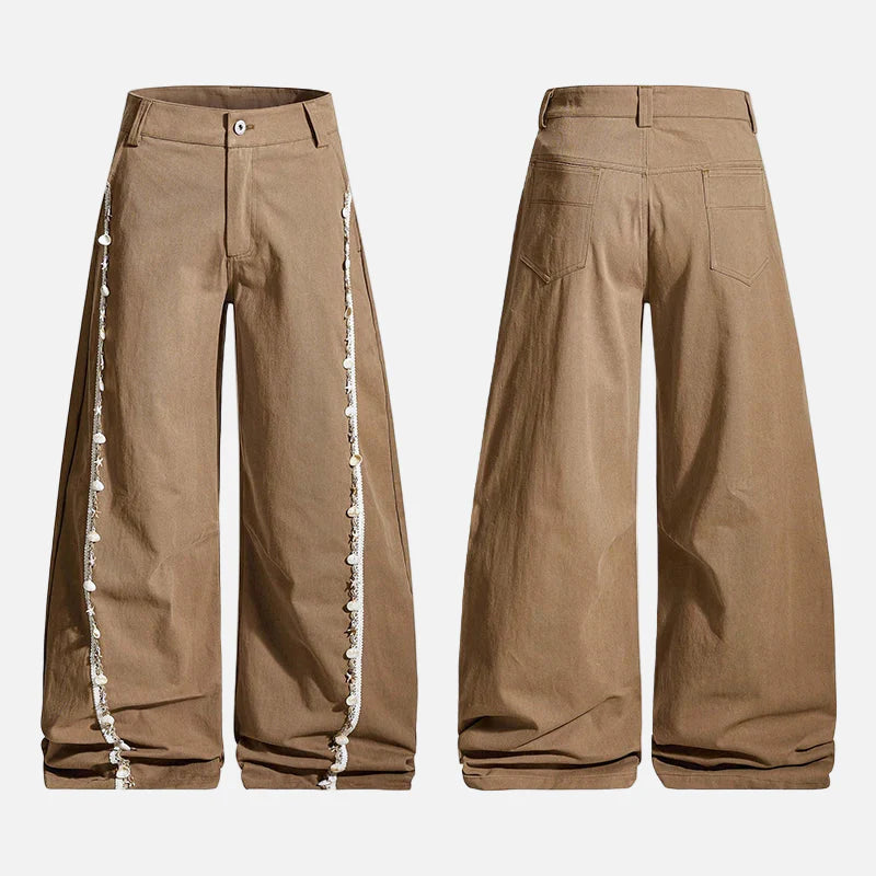 Shell Decoration Patchwork Wide Leg Pants