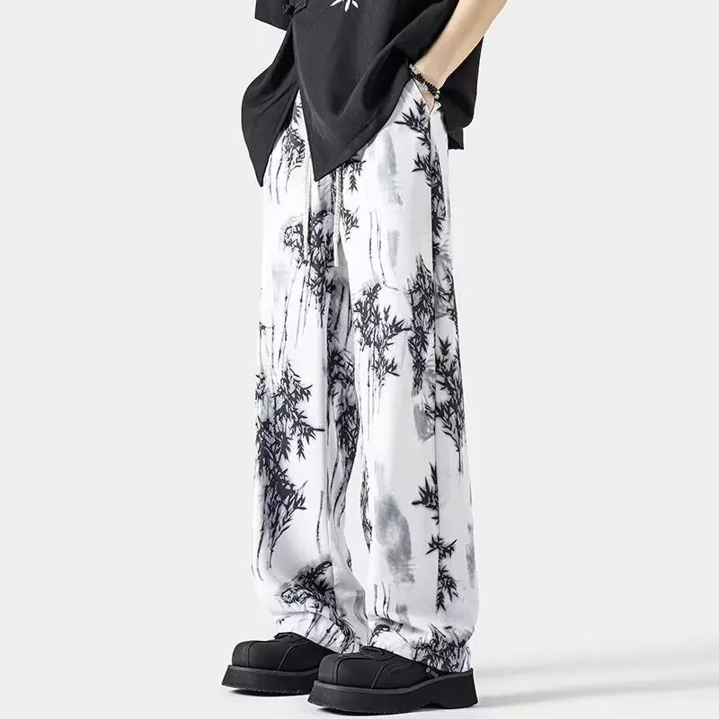 Streetwear Bamboo Plant Pattern Jogging Pants