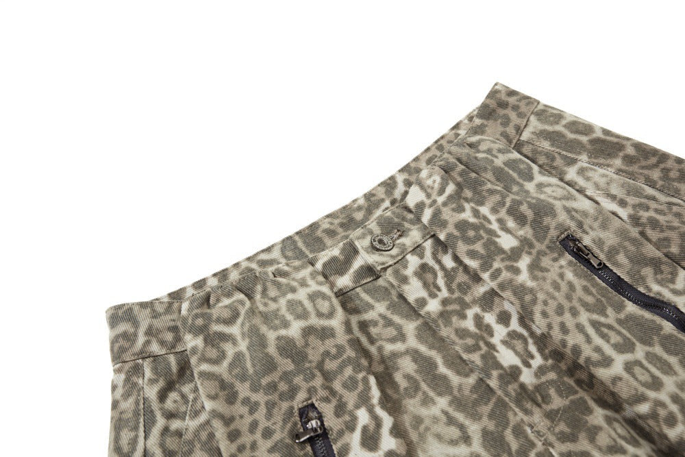 Streetwear Punk Leopard Print Wide Leg Pants