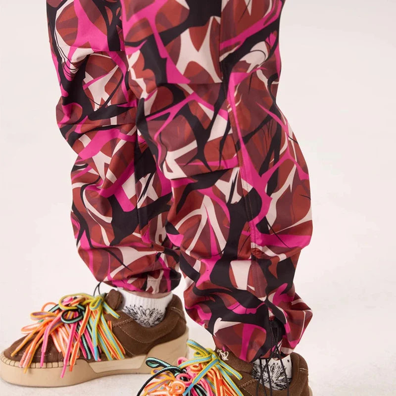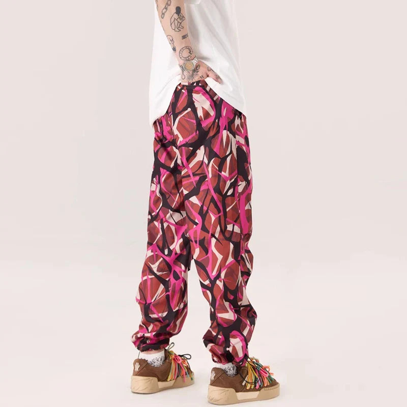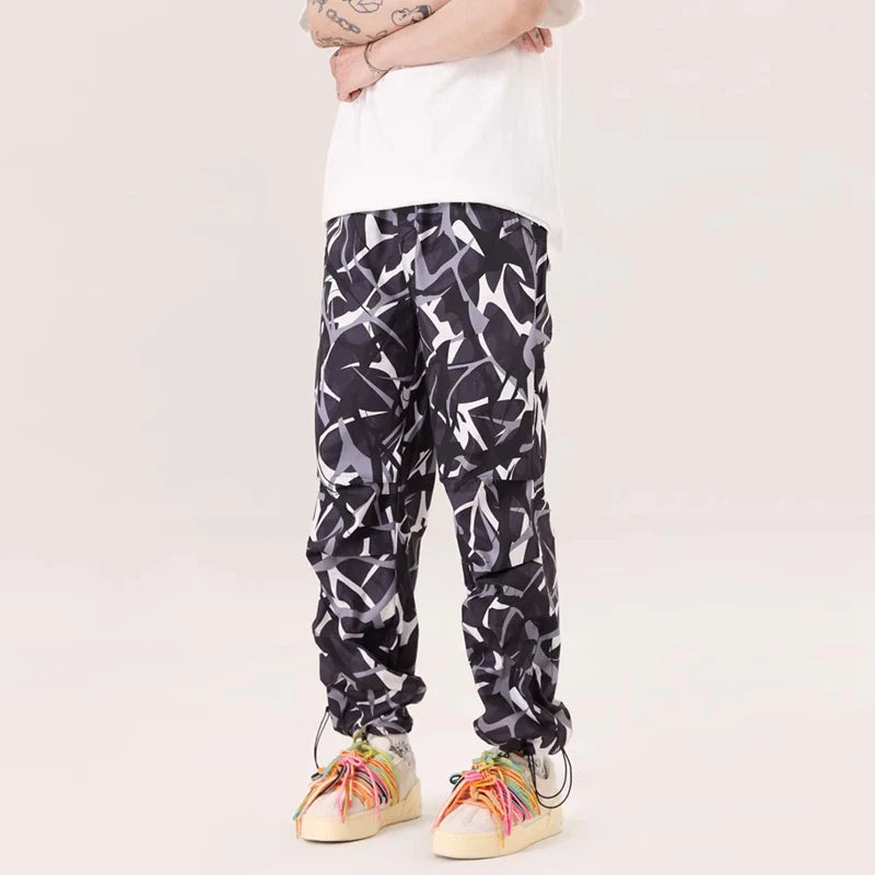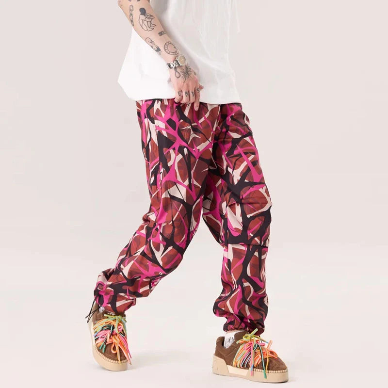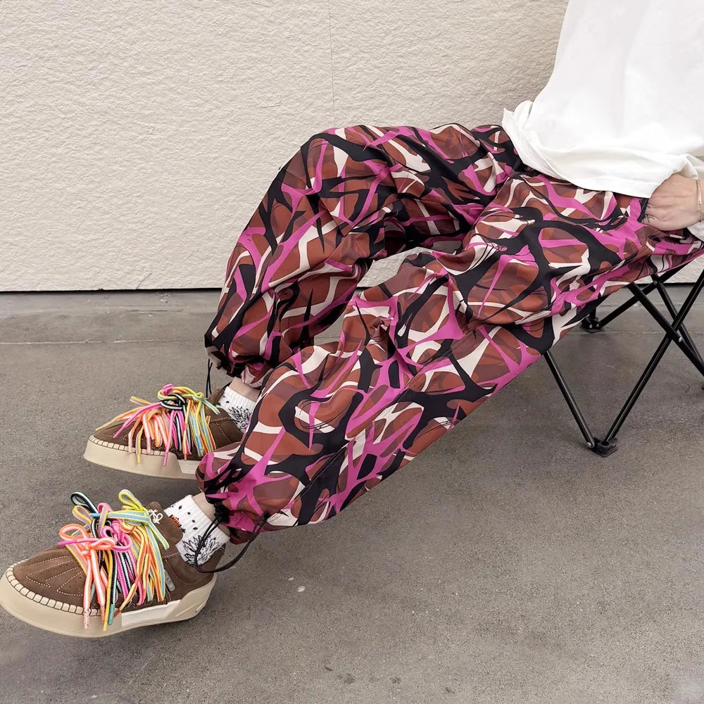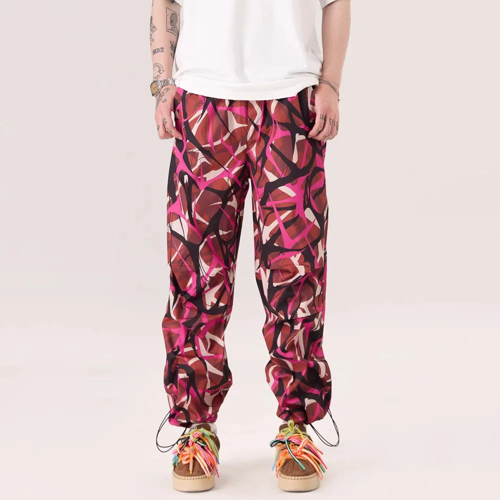 Thorn Flower Printed Camouflage Baggy Pants