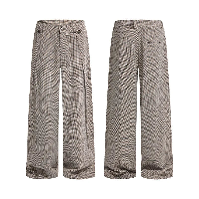 Vintage Plaid Print Wide Leg Suit Pants