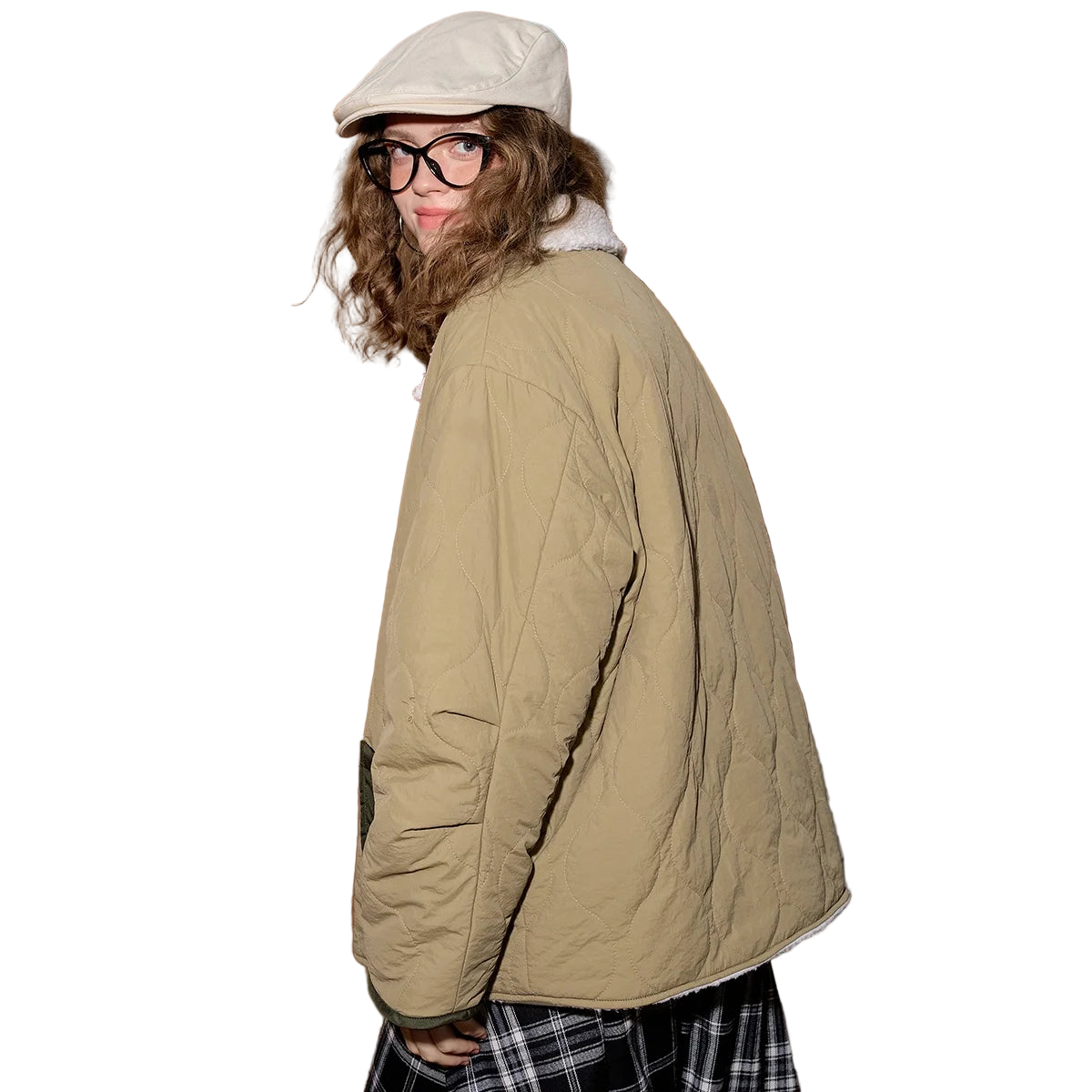 Colorblock Gourd-Pattern Short Puffer Jacket