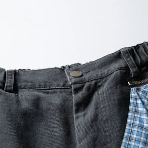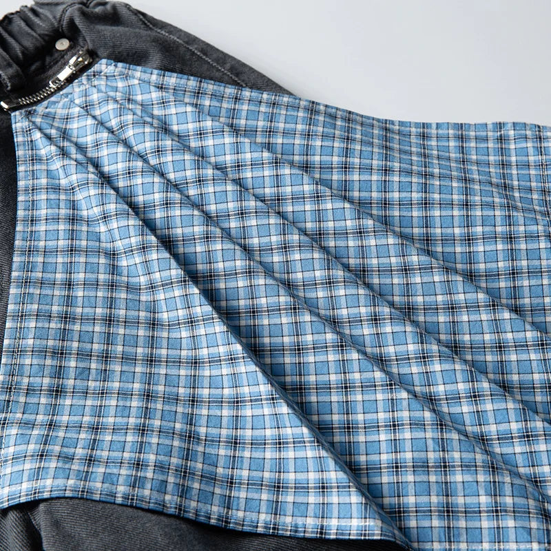 Plaid Decorative With Scarf Loose Wide Leg Jeans