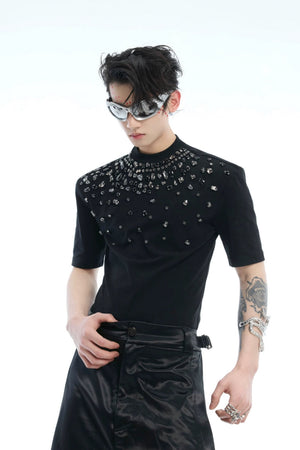 Rhinestone Fitted Stretch T-Shirt