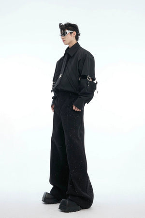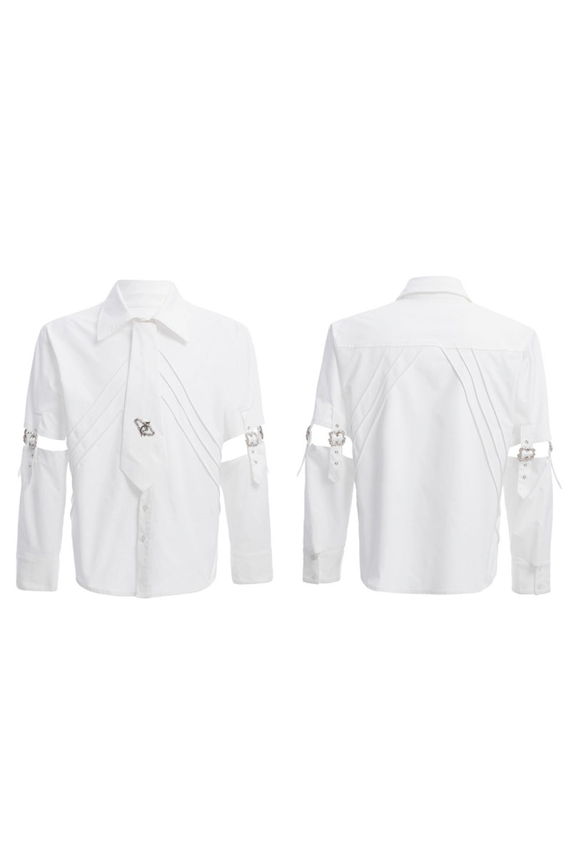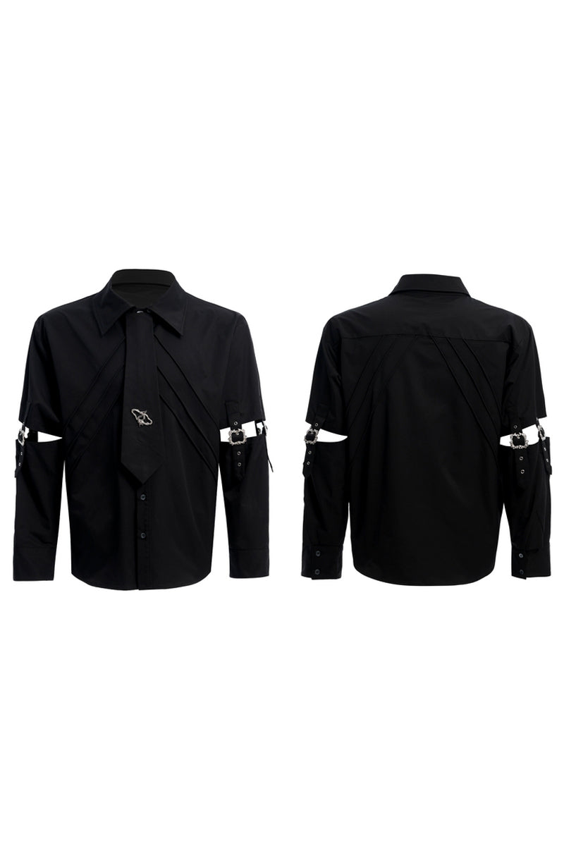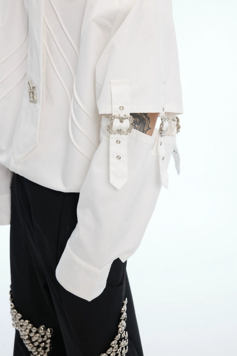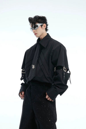 Strap Cutout Layered Button-Up Shirt