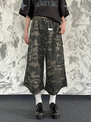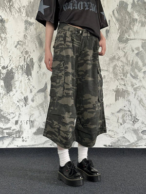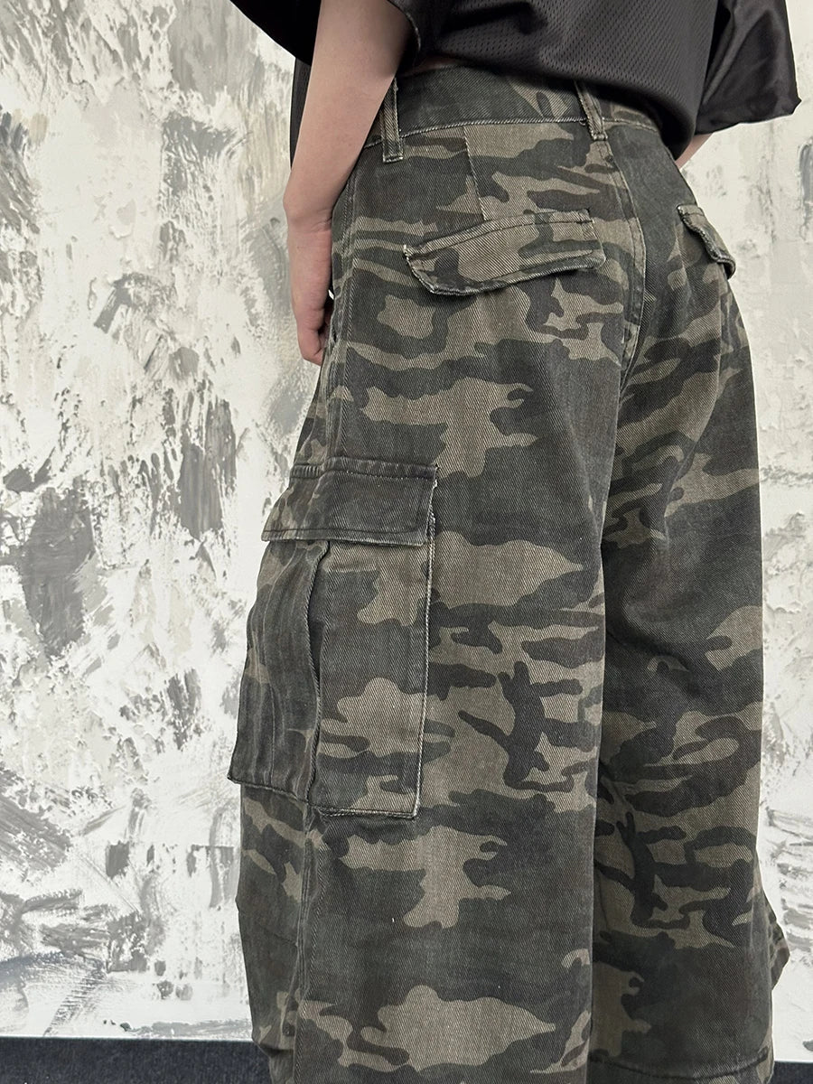 Breathable 90s Style Camouflage Cargo Denim Jorts