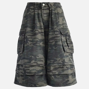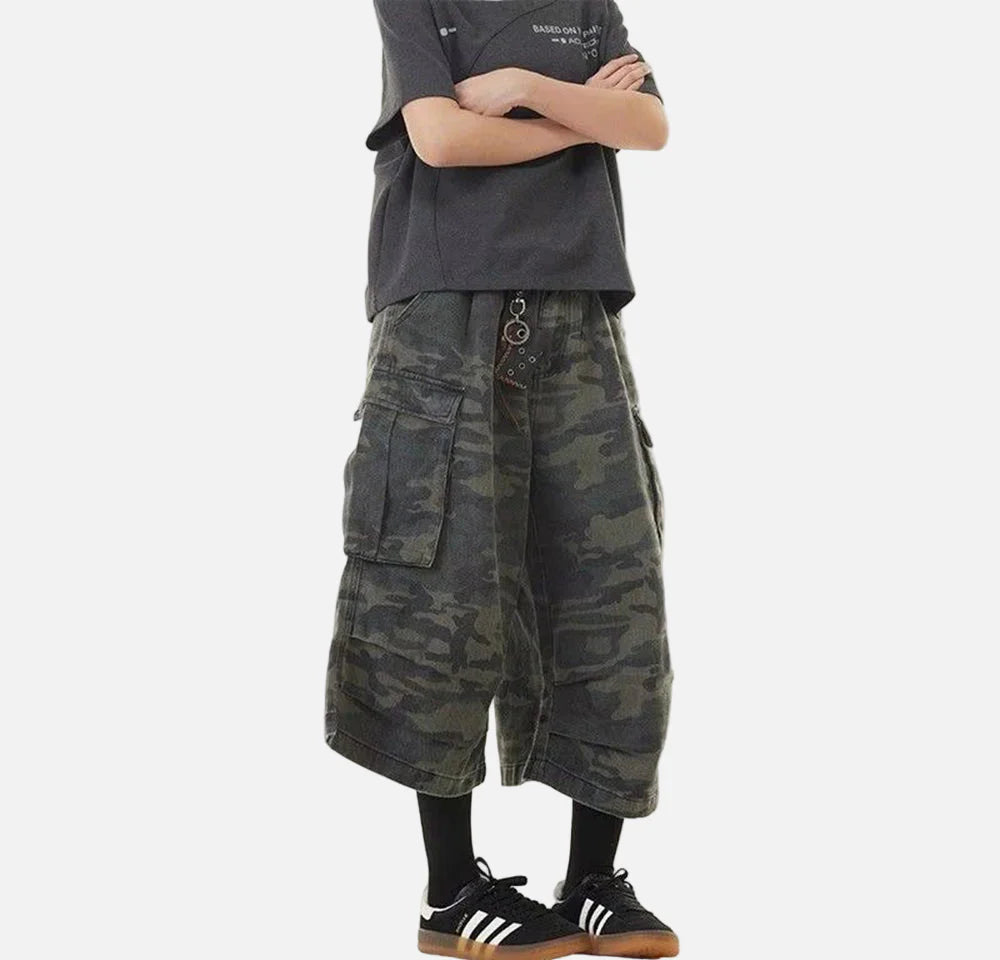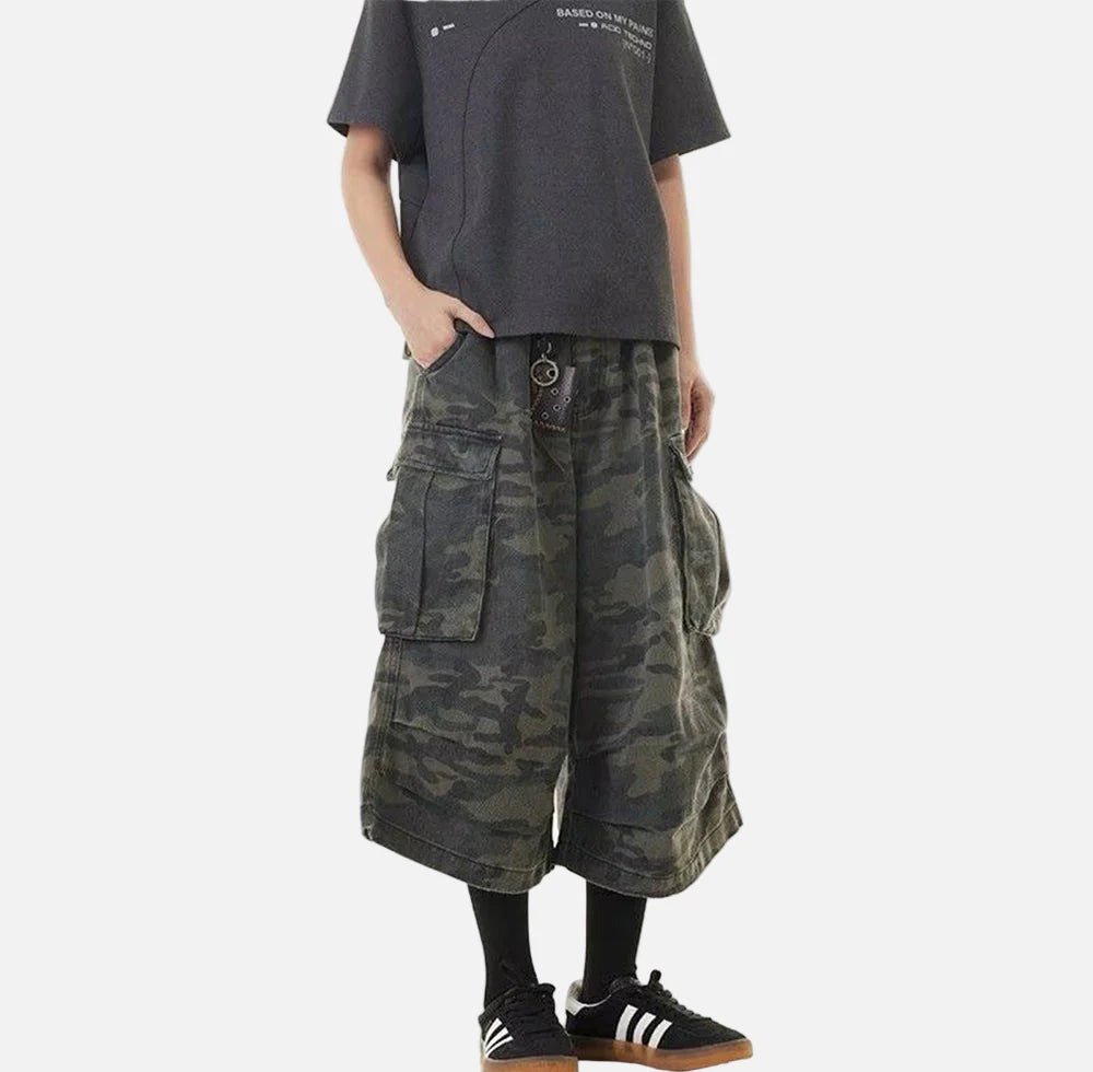 Camouflage Retro Denim Cropped Cargo Jorts