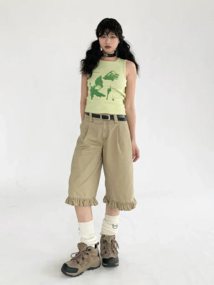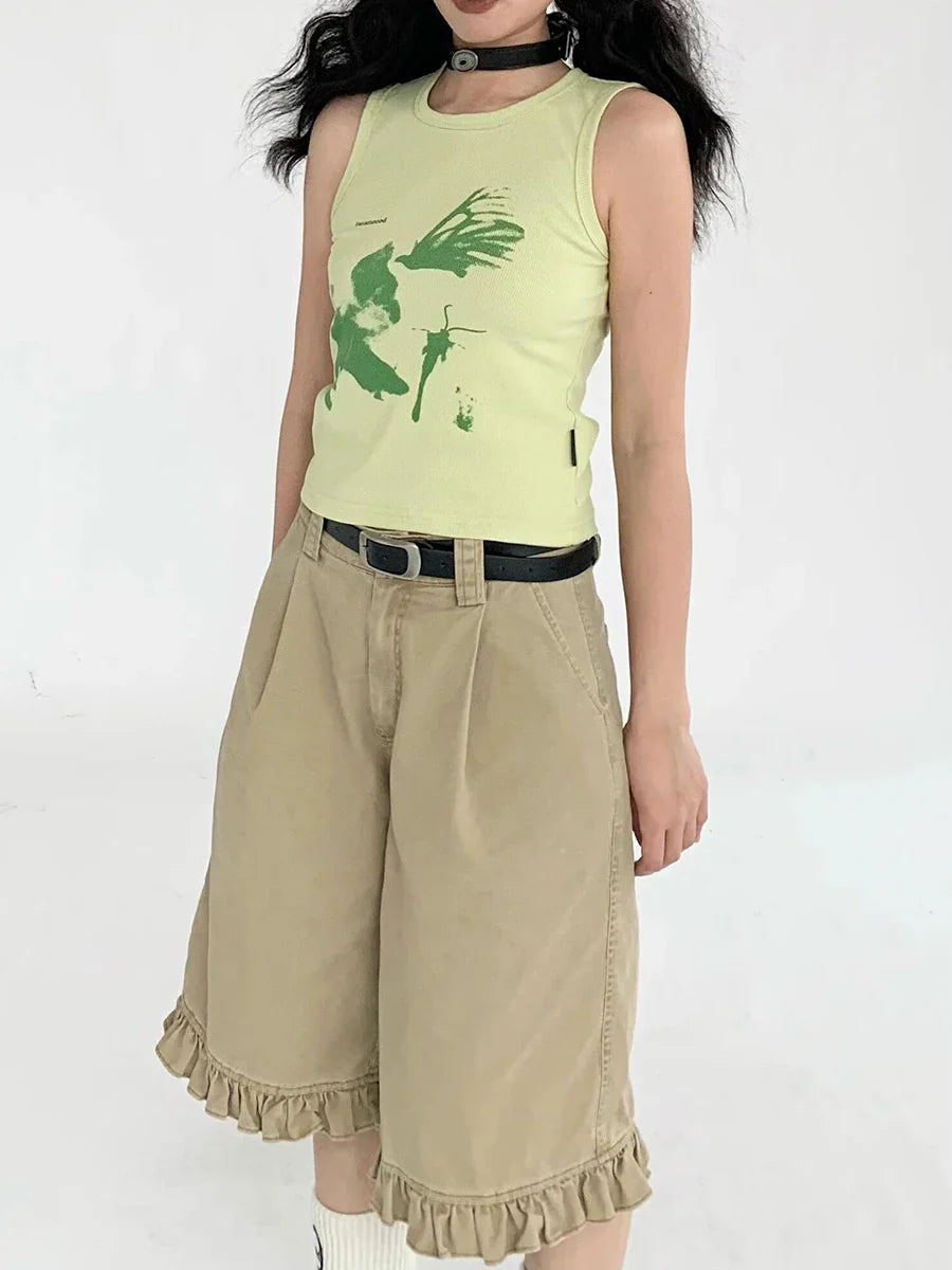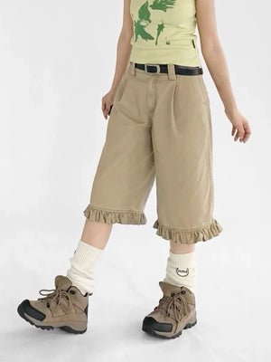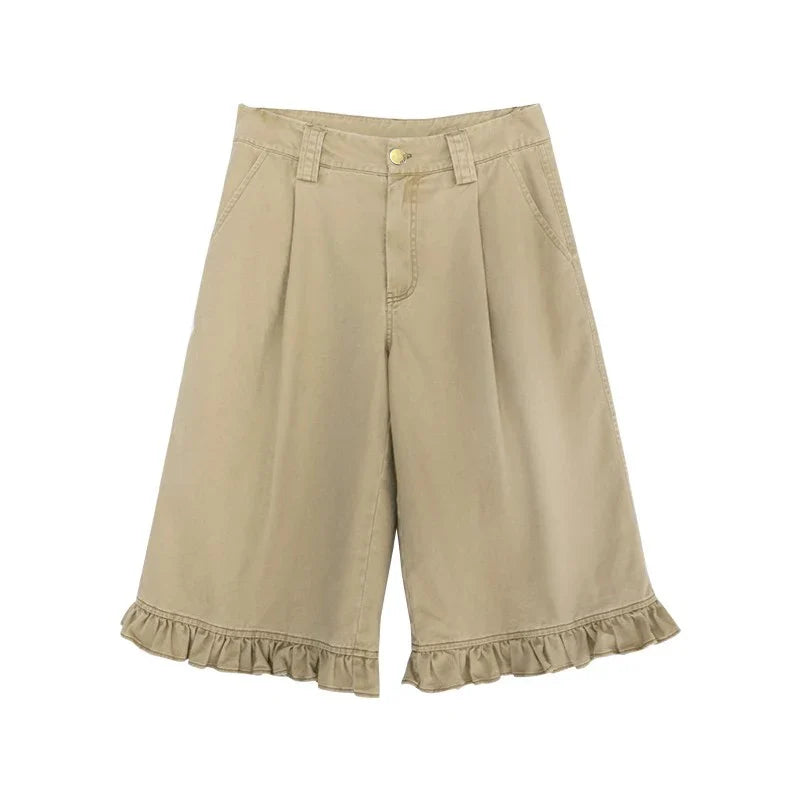 Chic Patchwork Wide Leg Denim Jorts