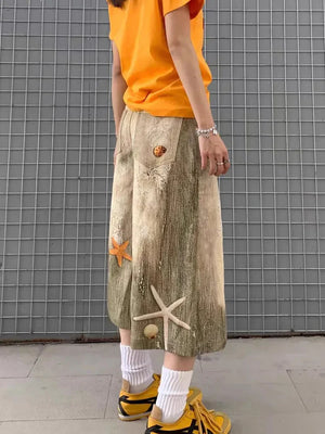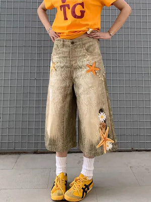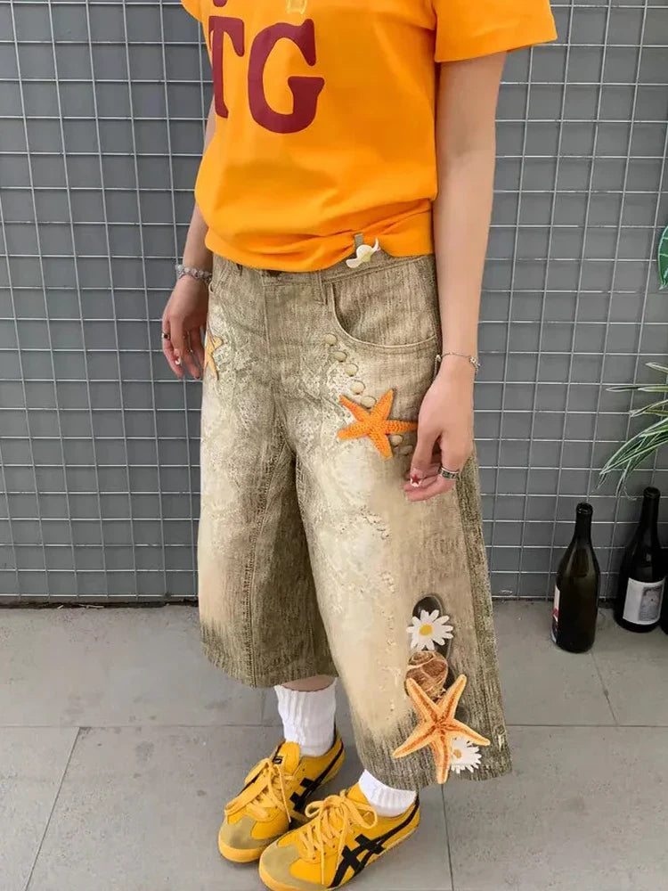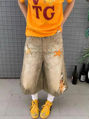 Cozy Oversized Star Washed Denim Jorts