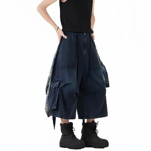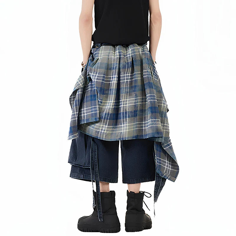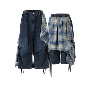 Customizable Plaid Hem Cropped Denim Jorts