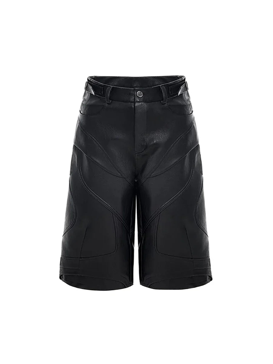 Handsome Black PU Leather Knee Jorts