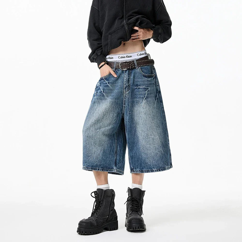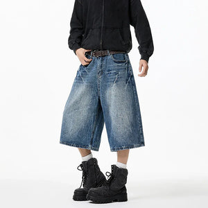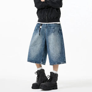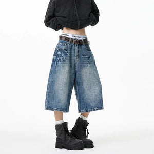 Lightning Pattern Loose Fit Casual Denim Jorts