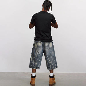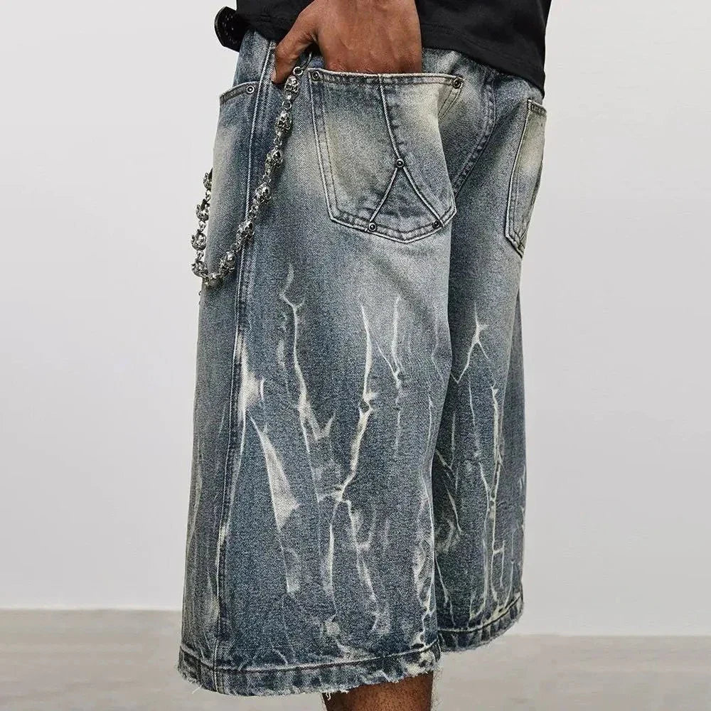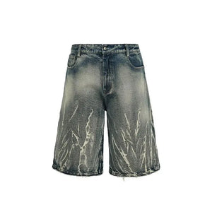 Lightning Pattern Washed Cropped Denim Jorts