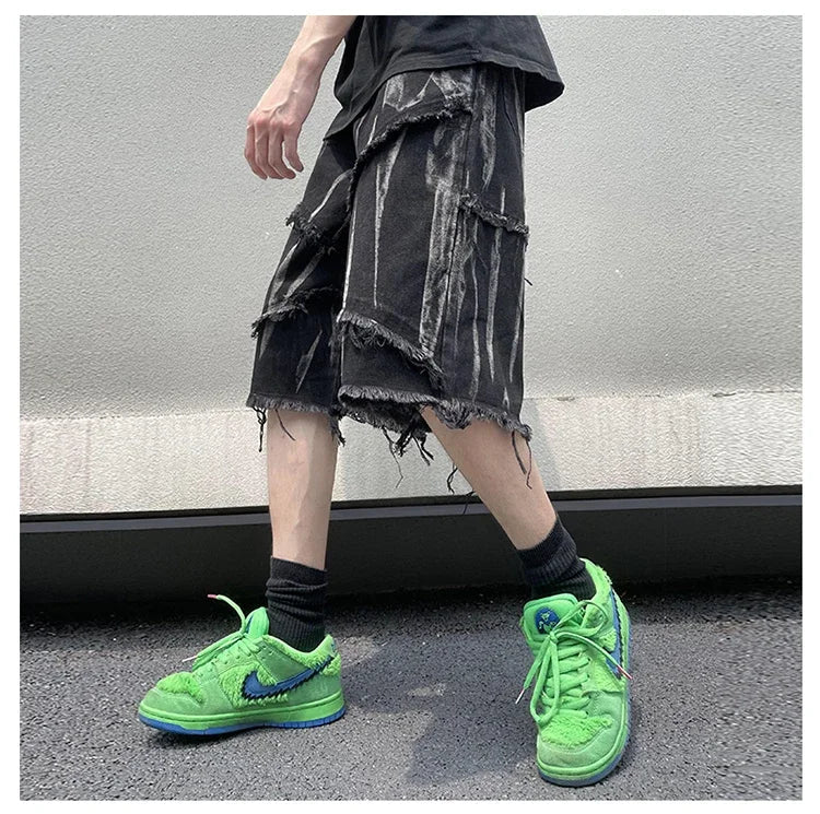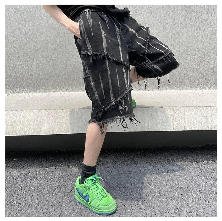 Mens Gothic Ripped Black Denim Jorts