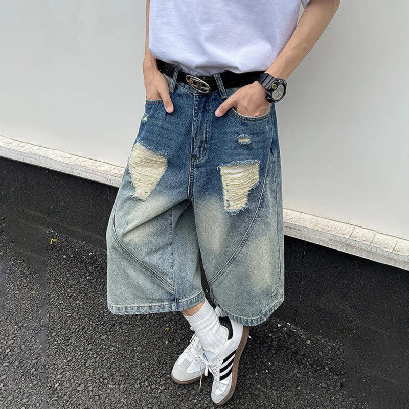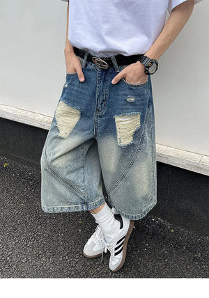 Original Gradient Cozy Vibes Washed Patched Jorts