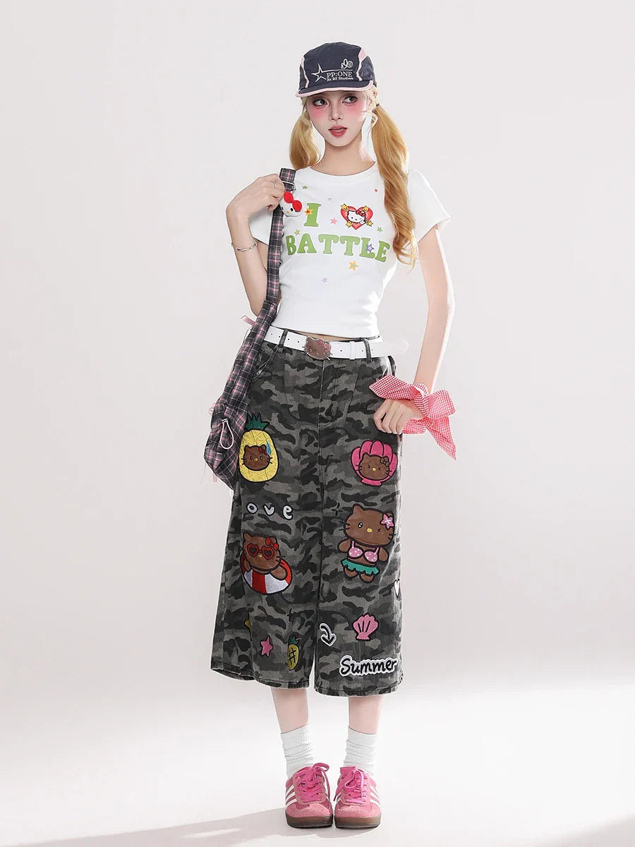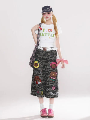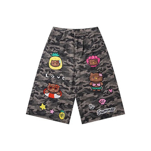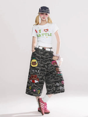 Reddachic Cartoon Patched Camo Jorts