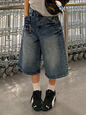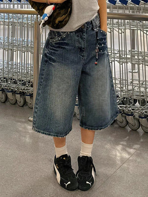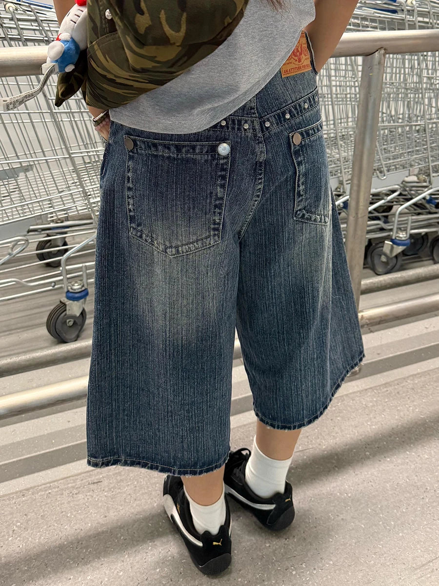 Streetwear Washed Punk Rivets Denim Jorts
