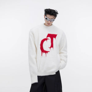 presents these black / white / pink and red sweaters as part of their Autumn/Winter '23 collection